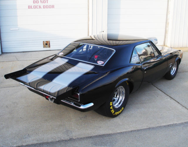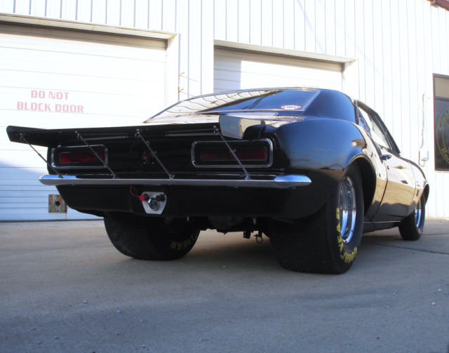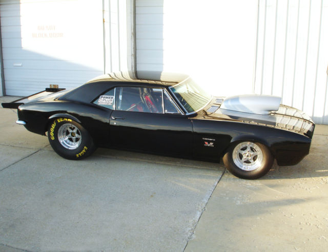 Race Car: Original title 1967 Camaro SS, Only 28,000 original miles. All steel body (except hood). Factory glass. Stretched quarter panel wheel openings. Headlight and taillights work. 12-point mild steel cage (certified 8.50 ET). 2"x 3" main frame with Monza front suspension. Rack & Pinion steering. Front motor plate. Engine limiters, RH and LH side. Custom made step headers 2-1/8 to 2-1/4 (made by owner). Dana spooled rear end with 4:88 Pro Gears. Mark Williams 35 spline axles, 11/16" wheel studs. Hole Shot-Billet Wheels. New 14" x 32" Goodyear slicks (no runs). Wilwood disc brakes, front and rear. Aluminum master cylinder. Aluminum radiator. Chris Alstonâs Severe Duty ladder bars. 12-way adjustable rear shocks. 5 gallon fuel cell. Holley Mega pump. Fuel line -10 pump and regulator. Dedenbear delay box. Over head switch panel. Carbon fiber gauge cluster (fits stock dash panel). Dual mount batteries. Car weighs 2,796 lbs.Motor 502 cid:Chevrolet Big Block. Dart aluminum heads 320âs, 118 cc, 2.300" Int., 1.900" Exh. Jessel shaft rockers 1.7 ratio. Jessel belt drive timing. Titan Speed oil pump. Jeff Johnston aluminum oil pan and billet aluminum valve covers. Eagle forged crankshaft (stroke 4.250"). Eagle H-beam rods (6.535"). J&E gas ported competition pistons (4.350" bore) 14.2:1 compression. Isky roller camshaft (4/7 swap) .808" lift Int., .765" lift exh., Duration @ .050" 282° Int., 292° Exh. King Demon Carburetor 1400 CFM (modified by Bob Book). Balancer ATI. Vacuum pump, Aeromotive. Motor is completely new, it has only one Dyno session. The motor produced 814 HP @ 7900 RPM. Motor should produce over 835 HP once it is completely broken in. Transmission:Dedenbear 2-speed Power Glide, 1.80 straight cut gears. mark Williams trans yoke and pinion yoke. Pro Brake. Coan 8" converter. B&M shifter.The last time this Camaro went down the strip, it ran 9.20âs with a 477 cid motor. With this new motor it should run high 8 second E.T.âs. Camaro is very easy to drive, it goes straight as an arrow flying down the quarter mile. If you were to build a car like this from scratch, expect to spend upwards of $80,000! Hereâs your chance to get a great high performance drag Camaro for a song! Questions? Contact me thru ebay. Check payment details for accepted forms of payment. Thanks for looking. Good luck. Camaro is located in Kankakee, Illinois 60901, 65 miles south of Chicago. It is being kept in dry heated storage. You can view the car in person, just give us 24 hour notice.