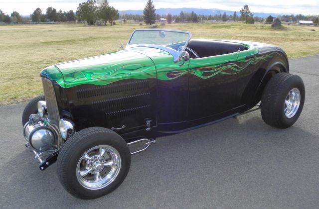 1932 Ford Roadster Hot Rod (Black with Green Flames/Black Ultra-Leather)
