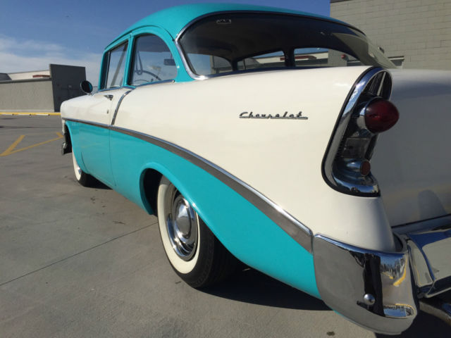 1956 Chevrolet 210 2-Door Sedan Original 265 V8 2 barrel Carb Power glide Transmission Paint: India Ivory/Tropical Turquoise Interior: Original Charcoal Interior Radio Delete Driver Quality  Turnkey Cruiser, Starts up one key bump Drives Straight, doesn't pull, no rattles or knocks.  Real Solid car Mostly Original Car except for an older repaint in ...