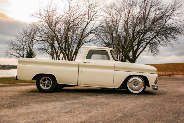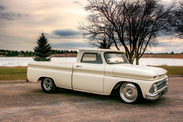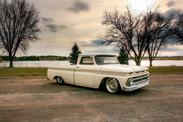 This is a 1964 Chevrolet C10 Pickup Hotrod with a chopped top and lowered with adjustable air ride suspension. It has been a featured vehicle in Classic Trucks Magazine as well as the Classic Trucks Calendar. The magazine issue will come with the truck. I love this bad boy, but selling it is out of my control. It is a beautiful classic with a monster engine. It turns heads literally everywhere you go. I get at least 1 thumbs up every time it's out, and always a couple of pictures. Custom chopped top with Vanilla Shake PPG paint, You can choose which set of wheels you would like, or we can make a deal for both sets The front are 20" Centerline Smoothies and the Rear are a classic style in 15" 468ci Chevy Big Block Ground Pounder (Pro-built) Merlin heads and intake with an Edelbrock 750 carb Hooker headers Turbo 400 with TCI converter Frame off restoration (the underside looks flawless) The front end is from a Camaro sub frame (including brakes) Power brakes with front discs Lowered on Air Ride suspension (adjustable with buttons) Ford 9 inch rear end with 3.50 gears Custom interior professionally done Power steering and tilt steering Custom wood bed It has to have around 500HP but it has not been on a dyno. This thing is ready to rock and roll. {3o8}293o626 There are videos on youtube. one titled: FOR SALE 1964 Chevrolet C10 Hot Rod 468ci and the other: 1964 Chevrolet Pickup Street Rod Burn Out Classic Muscle Car for sale in MI Vanguard Motor Sales Thank you for looking. Tags: chevy chevrolet c10 c 10 hotrod hot rod rat classic muscle car v8 v8 454 468 big block motor bagged slammed air ride airride suspension ck c/k 1500 silverado trade trades white