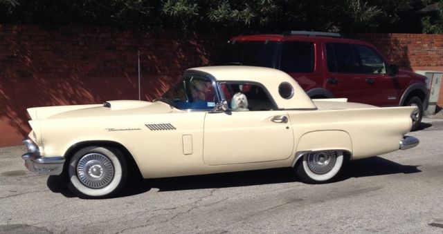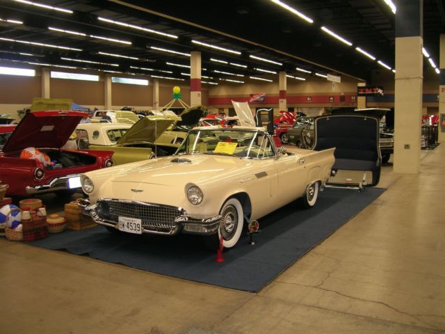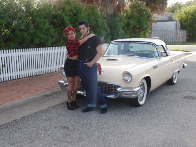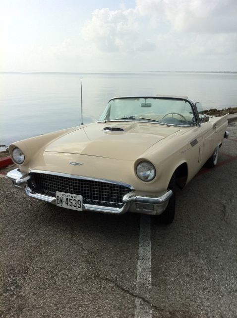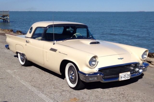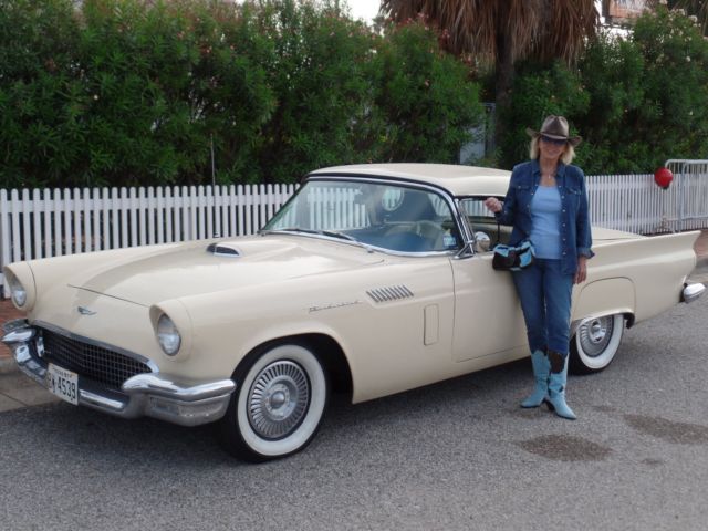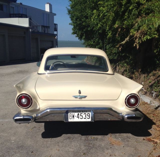 312 V8 Automatic Frame on Restoration in 2009 that includes Thunderbird PS & PB added.. Custom paint and interior with bun warmer on drivers side seat.. All work done by: Peter Leddy, Plano Texas Auto Body Specialist, Garland Texas Mr "C's Upholstery, Garland Texas You will get a CD with restoration pics.. The radio was changed out in 2003 but the original one will be included.. Air Conditioner was put on in 2000 and has been changed to new freeon and is cold.. Heater works fine.. Most everything on it is original.. Engine, transmission and so far not needed to be overhauled.. I had a aluminum radiator and cooling system done in 2013 but I saved all the original parts and they are included.. This beautiful 1957 Thunderbird was redone to be unique, driven and enjoyed.. Chrome is original and in good condition.. Since I've owned Beauty it's never spent a night outside except for a weekend car event.. After I had it redone in 09 I've entered in a few car shows and Beauty either won or placed.. and wins people choice.. I put the awards in a box and you will get those too.. It is a lot of fun for photo shoots and weddings.. See pics.. I've never charged people but I know some classic car owners that do.. Beauty was honored in 2012 by Concours Parts Catalog by being put on the front cover.. You will get 3 of the catalogs.. I am the 3ed owner and have papers from the first two owners.. It started life in New Mexico.. I think it was 1975 that it was sold to a guy in Lubbock Texas.. He sold it to Amos Minter and I bought it from him in January 11 2000.. I have done my best to take good care of this beautiful Tbird.. It is a responsibility I've enjoyed.. Wherever Beauty is people gather around to take pics and want to know all about this gorgeous Tbird.. Thumbs up! It's like driving an American Flag.. If you have any questions message me thru eBay.. At end of auction please deposit $500.00 (non refundable) into my Paypal account.. Full payment within 7 days.. You can also view and buy Beauty at House of Cars, 913 Airline Rd., in Corpus Christi Texas.. (361-334-1000) Gary Haxton owner of House of Cars is helping me with the transaction.. Remember banks and credit unions give loans on Classic Cars.. You can own this beautiful, iconic, well made, 1957 classic Thunderbird.. and insurance is about $300.00 a year.. Shipping will be at your expense..