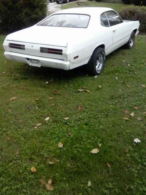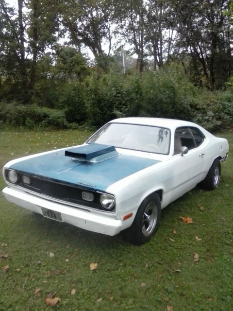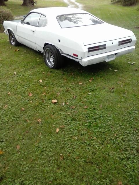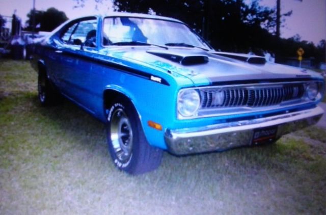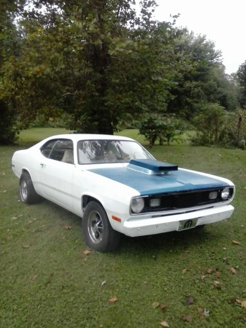 Up for auction is a project 1972 Plymouth Duster "AS IS". 1st off the car currently has centerline weld type wheels on it now. NO KEYSTONE WHEEELS INCLUDED. The last photo shows what a "72 Super Blue Twister Duster looks like from the factory. The fender tag has a G code (318 motor), B3 paint code street basin (Super Blue or Petty Blue) with Twister Duster code, black stripes, dual snorkel hood and shark tooth grille. I have the original hood with no scoops. The car currently has a standard Duster grille. I do not have the original shark tooth grille. I bought the car with a non running 400 big block motor and a 727 trans in it. There is holes cut for fender well headers. The rear frame has been narrowed but still has the stock wheel wells. The car has the stock A body 8.75 with a 3:55 positive track center. Pulled the 400 and dropped a 1974 small block 318 with what sounds like a rod knocking. It does run good. I haven't figured it out yet. I am not sure on the 727 transmission. The car is a working project still in progress. Not everything is hooked up yet either (belts, radiator ect). The lights and brakes work. Comes with a steel fuel cell and a newer deep cycle battery. There is no trunk floor. Needs drivers quarter panel and a lower patch panel for the passenger side . I have a drive shaft for it but it will need cut. Decent fenders, doors and floor pans. No headliner or bows. No dash pad. Some hail damage. Typical rust around torsion bar mounts by the trans. I have a complete section included for this area if needed. Tires are aged. It has a B&M shifter installed. The car is not at the point to where it can be restored back to factory or it can be finished out pro street. Dash tag, fender tag and clear title all matches. Ask questions if you feel serious. Cash deal. $200 non refundable deposit. . Local pickup only. Thanks for looking