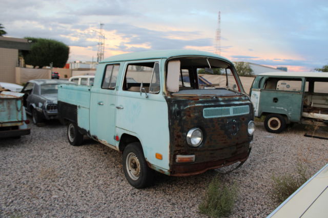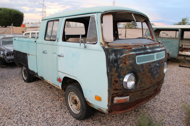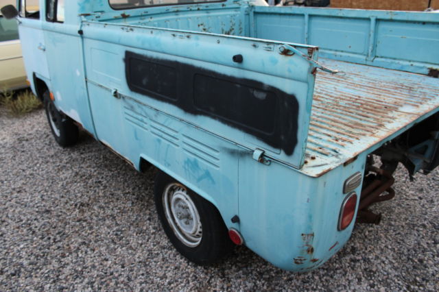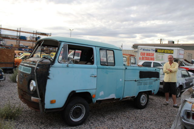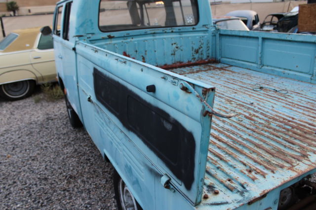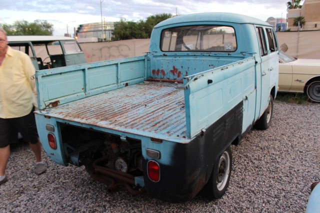 THIS IS A NO RESERVE AUCTION FOR A 1968 VW DOUBLE CAB PICK UP TRUCK. I HAVE HAD THIS TRUCK FOR ABOUT 10 YEARS AND NEVER HAD TIME TO WORK ON IT. WE ARE IN THE BUSINESS OF BUILDING CUSTOM VEHICLES AND RESTORING CLASSICS AND JUST HAVE NEVER HAD TIME TO WORK ON OUR OWN PROJECTS. WE BOUGHT THIS BUS ON EBAY ABOUT 10 YEARS AGO AND HAVE MOVED IT FROM PLACE TO PLACE FOR TEN YEARS AND NEVER HAD TIME TO DO A THING WITH IT. WHAT YOU SEE IS EXACTLY WHAT WE BOUGHT. I HAVE TO FIND THE TITLE BECAUSE I HAVE NO IDEA WHERE I PUT IT WHEN I BOUGHT THE THING? IT MAY BE IN THE GLOVE BOX FOR ALL I KNOW. 10 YEARS AGO I HAD SO MUCH MONEY I BOUGHT PROJECTS LIKE THIS EVERY WEEK FOR FUN AND TEN YEARS LATER I REALIZE I DON'T HAVE TIME FOR FUN ANYMORE. PLEASE FEEL FREE TO EMAIL ANY QUESTIONS WHAT I WANTED TO WAS LOWERED AND ALL COMPLETE WOULD BE AWESOME