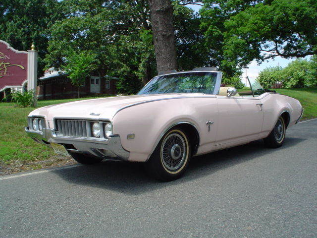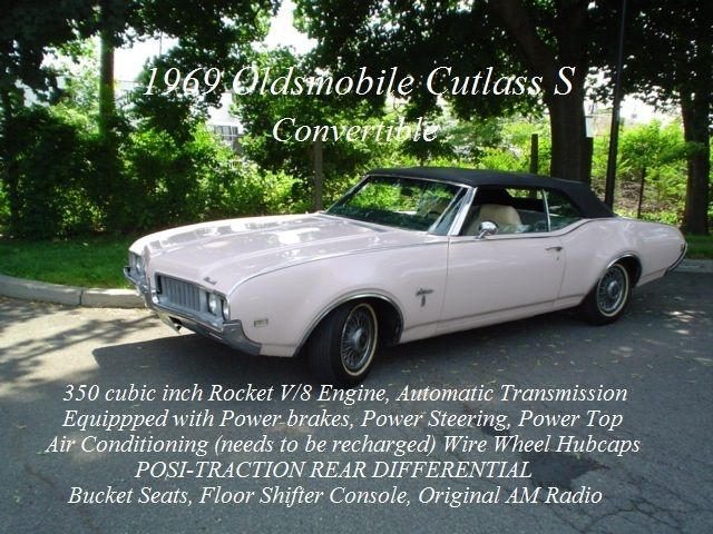 1969 Oldsmobile Cutlass Supreme Convertible 350 2 barrel V/8 engine Automatic transmission Equipped with the following Power brakes Power operated top Power steering Air conditioning Factory AM radio Original Factory Build Sheet Positraction Rear Differential Factory Wire Wheel Hubcaps Re-upholstered Front Bucket Seats. New Brake Master Cylinder Brake linings replaced 2 years ago New Battery I am the second owner and bought this vehicle from the original owner in 1981 and has always been garaged just over 84,000 original miles In 33 years of ownership, I have driven it only 6,000 miles Please understand that this is not a show quality vehicle, but a very nice eye catching convertible It has always been my belief to enjoy my cars and maintain them in good driving condition. As you can see from the low mileage, this is a rare find. *When I bought the car in 1981, I had it repainted a much more pale pink,(almost white in the sun) and a new top installed The top has a glass rear window The muffler is showing signs of wear although still quiet the resonator gives it that quiet deep throat sound popular in the 1960's The original factory floor mats are still there with the Oldsmobile logo Carpet is in good condition but worn in rear seat area A/C needs to be recharged bumpers have nice chrome with a few dings please ask any questions before bidding *The original color was a special order paint 1957 Ford Dusk Rose stated on build sheet GM assembly plant Linden, NJ Transportation and related cost are the responsibility of the winning bidder $1,000.00 non-refundable deposit via PayPal due within 48 hours of winning bid with remainder of payment due within 10 days of sale I am a serious seller so please be a serious buyer Review my feedback file and judge for yourself If you have any questions, please ask before you bid I will answer each & every inquiry to the best of my ability in giving you an honest representation of vehicle condition. Calculate transportaion costs from Zip Code 28027 Vehicle has clean NJ title I reserve the right to accept or reject any & all offers car is for sale locally and subject to sale before Ebay auction ending