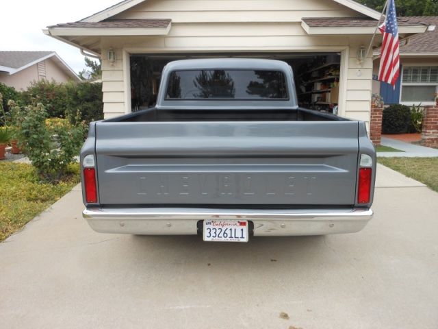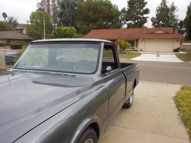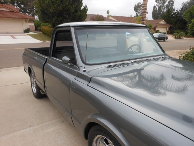 Frame off (bead blasted) No rust ever New Paint (Metallic Gun Metal Gray) Powder coated engine inner fenders Truck shaved all around (including tailgate, latch moved to inside the bed) 350 engine 350 trans New Vintage A/C w/Vintage Air Front runner system PS New P/B system w/CPP dual master w /11" booster w/ front disc. 15" slotted mags w knock-offs and new tires Shaved firewall stainless bolts all around New body pads New bumpers Inside the bed coated New 67 grille and hood, hood reinforced Aluminum HEI distributor New polished aluminum air gap intake manifold NEW 600 CFM Edelbrock carb. Doug Thorley headers (chrome) New Be-Cool aluminum radiator New exhaust system (ss. tips) All new hoses, belts, plugs,and wires New factory glass w/photo gray one piece side glass and rear window (not after market tent) Front lower tubular A arms w/drop boxes New springs New aluminum fuel tank in the rear frame rails (bed fill) New interior Silverado bench/bucket seats w/console New CPP steering column Auto meter 7 gauges cluster w/clock New Kenwood sound system w/new 6.5" 2 way coaxial speakers in custom interior New dual door poppers w/keyless entry New American Auto wiring New battery and much more etc. etc. $24,000 OBO any questions call 858-518-2295