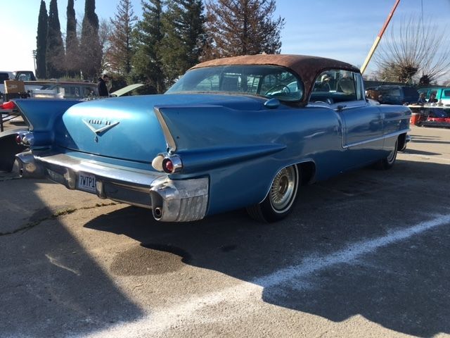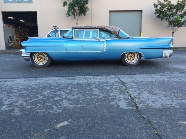 1956 Cadillac Eldorado Biarritz Seville VERY RARE! 1of 3900 This Cad has been sitting indoor and was a daily driver until it last ran in 1983. It is registered in my name and comes with clean California title! just poured some gas in the car and it fired right up will need a fuel system cleaning and brake work to make drivable again! 365 v8 with dual carbs, complete with Bat wing Air Cleaner , Power windows, Air conditioning and Sabre wheels! Seats and carpet look good but will need a cleaning. Car is 99% complete, and everything is in the trunk including all trim around windows, door panels ect! Vinyl top and headliner were removed, back in the late 90's. There is some rust around the top section of the back window and along drivers drip rail area (look at pics it appears to be a easy fix) Also small rust holes on both Left and Right lower Quarter panels. All floors appear to be solid except for a 6"x6" soft spot area under the drivers foot area its not missing or holes but the beginning stages of rust. Paint appears to be a older repaint or it may be original hard to tell some dings and small dents here and there Please look at all the pictures or send some one to inspect! ANY QUESTIONS 415-424-3535 car is located in San Francisco Ca BUYER RESPONSIBLE FOR ALL SHIPPING! SEND SOMEONE TO INSPECT SOLD AS-IS!!!!