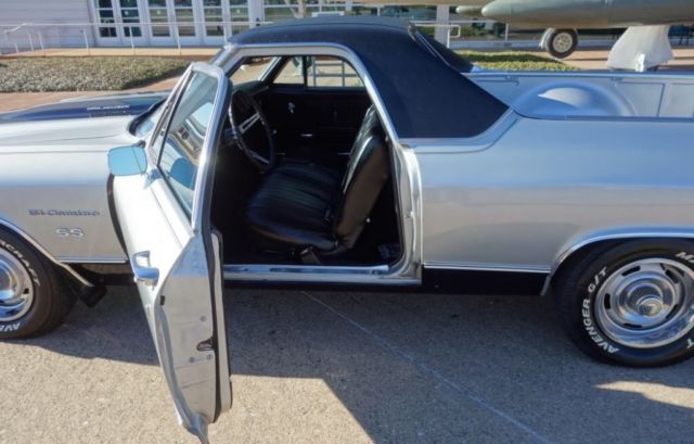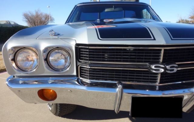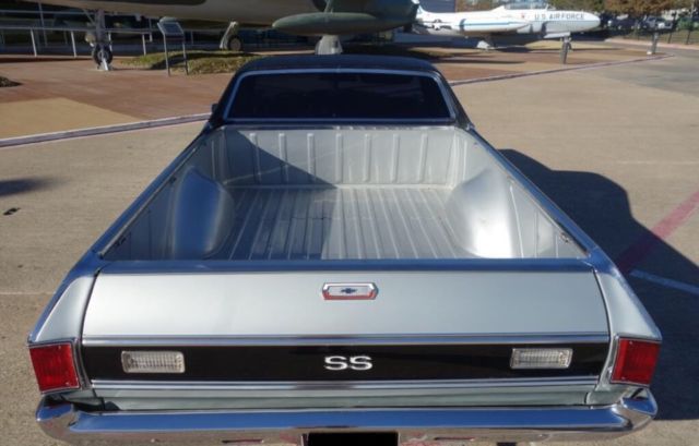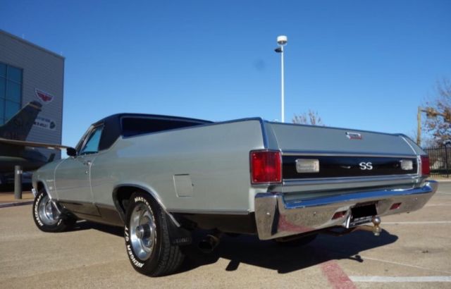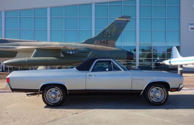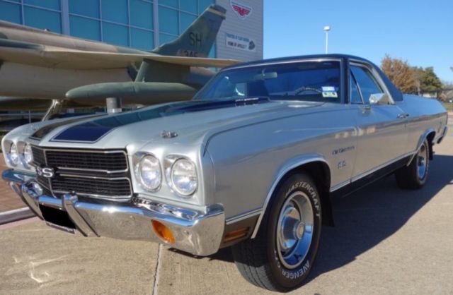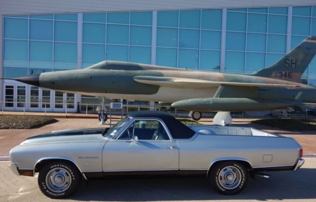 Copy and Paste link below in YouTube to watch full video of our El Camino For Sale!https://youtu.be/4tkE13yxTu0We are proud to present this classic 1970 Chevrolet El Camino. This car is custom built, powered by a stout 400 cubic inch smallblock V8 paired with a TH350 3-Speed Automatic Transmission. The paint is custom base/clearcoat silver metallic with black super sport stripes & a black vinyl top. It rides on classic 15-inch Chevrolet Rally wheels fitted with raised whiteletter radial tires all around. This car/truck has extra power is a blast to drive. Be sure you check out our video. The Dallas Love Field Frontiers of Flight Museum is the location for many of our photos of this classic '70 Chevrolet El Camino.The exterior silver base/clearcoat paint shows well over the solid and straight body. There are only some minor imperfections. This El Camino features added Super Sport badging and striping. The Cowl Induction hood looks excellent, it is also fitted with hood pins. Under the hood is the stout 400 cubic inch smallblock V8 engine. This 4bbl. powerplant features an aftermarket cam along with induction and breathing modifications. This car features power steering, air conditioning and power brakes. The firewall, inner fenders are core support are solid throughout. The original cowl identification plate is in place. Open the doors to 1970. The black vinyl headrest bench seating shows well throughout. The dash is clean and straight, free of cracks. The speedometer is functional. An aftermarket trio of amp/water/oil pressure gauges have been mounted under the dash. A Pioneer AM/FM Cassette stereo has been installed as well. A Sun Mini Tachometer is mounted on the column. The door panels and door undersides are in good condition. The bed is clean and finished out in matching silver.The custom dual exhaust system exits just behind the rear tires. The undercarriage displays solid original flooring and framework throughout. Bilstein shocks have been installed along with the custom dual exhaust. The transmission is a TH350 3-speed automatic, paired with the stout smallblock Chevrolet engine. Both engine and transmission undersides look good. The front suspension features disc brakes.This is a must see 1970 Chevy El Camino that's getting very hard to find and is very sought after! Message us to schedule a visit and test drive if your in the DFW area before you bid!