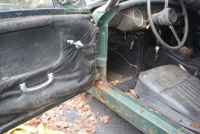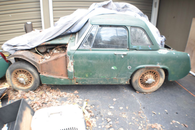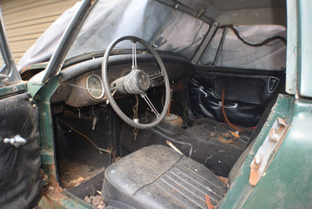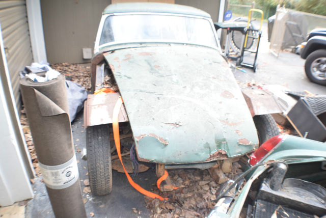 Car does not run. It does roll. It is British Racing Green color with a black interior. It has a removable hard top but no soft top. The engine is a 1275 size but has not run in years. It did run when it was parked. It also has the transmission. 4 wire wheels plus an extra in the trunk. The car is missing the two front fenders and the front grill. It is also missing the front and rear bumpers. Otherwise car is pretty complete but needs a restoration. This car only comes with a bill of sale, there is no title for this MG. There is rust in the rockers and rear quarters. Probably rust in the floorpans and some in the trunk. Surface rust in other areas. The interior is complete but in need of being restored. This car is one step away from being a parts car but could be brought back by the right person. I have a second car that I was using as a shell that is also on eBay that is the same year and color. Make me an offer and you can get both cars and probably make one complete project. This car can be rolled or winched onto a trailer. There is just me to help load during pick up. Please ask questions.