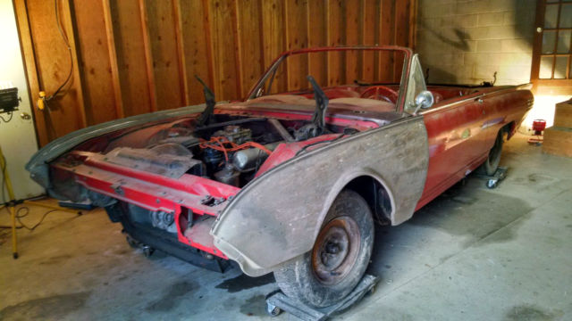 After parting out dozens of cars, the best sheet metal available needed to finish this car was put aside for this project. Nice Package Tray and Trunk lid installed. Windshield in safe storage. Passenger compartment floors solid and original - have been painted with POR-15 and new padding, carpet installed. Frame is solid - trunk floor needs rust repair, lip where flip lid lays needs to be repaired - patch panels from parts car goes with the project car. Bumpers, Hood, Flip Lid, Top Frame, Skirts, All Trim, All Convertible internal parts, Two extra solid doors provided with car. Windshield is in storage. This is a complete project car. Fenders, Doors, Trunk lid, hood and package tray have been stripped in preparation for body work. Car ran and drove when parked before body work started. Should be gone over mechanically completely to put it back on the road. We strongly encourage any prospective buyer to call and set an appointment to review the car prior to any purchase. Seller can be reached by phone or text at 610-509-4613. Along with the car comes several truckloads of spare parts from dozens of T-Bird hardtops and convertibles from 30 years of collecting parts. A photo gallery of the parts collection can be seen by texting the seller at the above number. Reassembly of the car is in progress; additional photos will be uploaded within the next week. Seller has a trailer and is able to provide delivery within a reasonable driving distance. A reasonable fee for expenses will need to be agreed to - Please contact seller to agree to any delivery plan prior to any purchase.