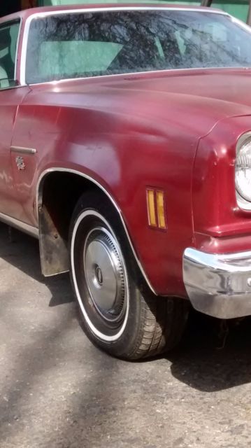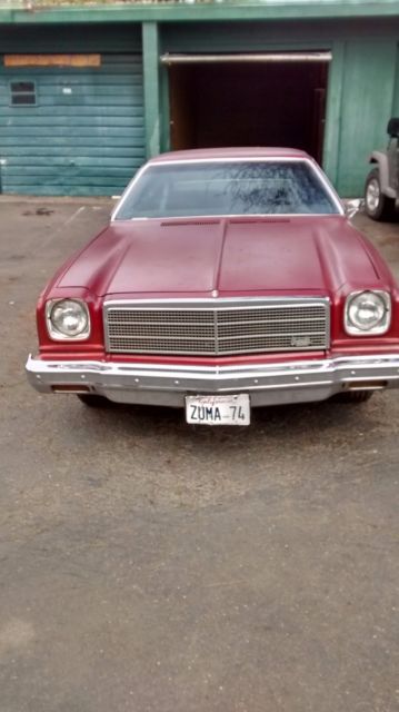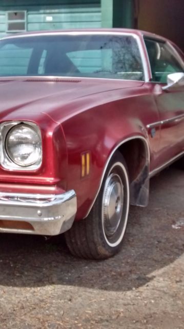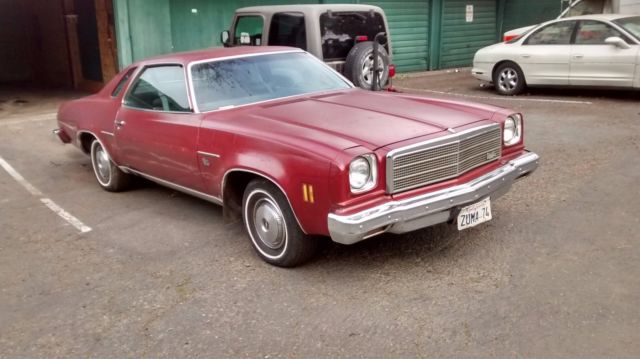 1974 Chevrolet Chevelle Malibu Classic coupe. Unmolested, original car, with 130,000 actual miles. Third owner. Engine 350 V-8 Transmission 3-speed automatic. Clock, AM/FM cassette. Carpet and headliner good. Some fraying on seat upholstery. Good tires. Original paint is lacquer-checked, minor rust at base of rear window. Car always starts and runs strong. Garaged, but I start it up and let it run every couple months. It has a new Delco battery. It has a rebuilt transmission and the carburetor was recently overhauled. The engine bay needs detailing. It has power steering and brakes. The exhaust system seems good. The car has all four wheel covers and has Goodyear radial tires with lots of tread left. The hood ornament is missing but I have another one in the glove box. There is a scrape on the right door and minor rust under the rear window. The plastic taillight housing on the right side has a hole in it but can be patched. The paint is original but badly checked. No major body damage. The trunk floor has surface rust. The undercarriage shows little or no rust (see photos). The grille is slightly bent. The chrome bumpers are good. The wheel well mouldings are fair. There is dealer-installed side mouldings. The one on the right side door is missing. The glass is good. The inside rear-view mirror has fallen off. The headliner is almost perfect. The carpets are good. The seats have fraying on the passenger side and under the back window. I have some original fabric in the car. The seat vinyl is good. The package shelf needs replacing. The dash is cracked and needs replacing. The speedometer needs cleaning (looks like mildew on the face from moisture). The dash lights do not work (might be a bad light switch) but the lights and wipers do work. Not sure if the washers work. It has a Delco radio with cassette. It has a clock which needs to be converted to quartz. Dome light works. Drivers side window rattles. Seat belts work. I bought this car 14 years ago with the intention of restoring it because it is a solid original car. It spent most of its life in San Francisco (outside) and belonged to an elderly gentleman who kept meticulous records. Not sure if I still have them. I have only put about 2,000 miles on it since I bought it in 2002. If registering in the State of California, there are approximately $800 fees due. 2008 was the last year registered; a friend agreed to register it in 2011, but he lost the pink slip. I will provide a bill of sale. SMOG EXEMPT. Please ask if you have any questions.