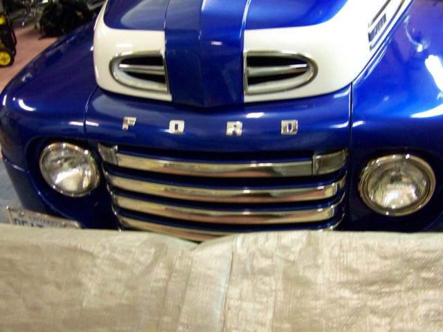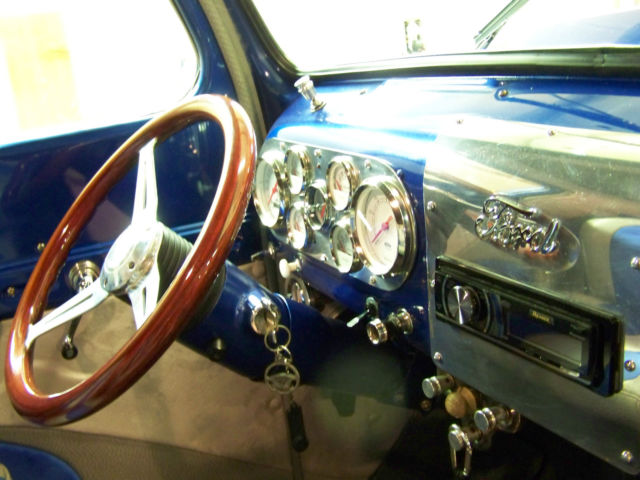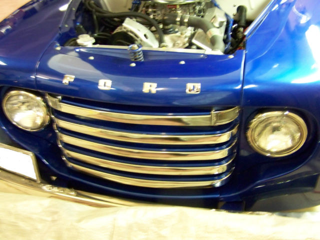 Bid with confidence as the cost to build the truck is well over our asking price.Please click the You Tube video to see and hear the truck running Here is a list of the new parts and modifications.Motor - 1984 Chevy Truck 350 with 4 bolt main. Gear drive no chain. 349 HP with 4000 MilesCarb - 650 CFM Edelbrock Exhaust - 40 Series Flow Masters 21/2 inch to 3 inch Tail to 3.25 inch Trumpets ( As you can see in the video this truck is loud!)Headers - Headman CustomizedRadiator - Be-Cool Aluminium rad with Syclone FanDistributor - Fire Ball Dist AssemblyEngine Trim - So Cal Custom Air cleaner, Brushed Aluminium Nascar Valve Covers Wires - 10 mm BluePlugs - AC Delco Trans - 700R Electronic lockup 2300 Stall / Shift kitRear - Nova Housing Leaf Spring 3.42 Auburn Posi. All new drum brakeRear Springs - CameroHorn - 1930's OOGA style Rims - Craigars with Knock OffsTires - BF Goodrich T/A 225/70/12 front 235/60/15 rearBattery - Mounted under truck in front of rear wheel Step Plates - original FordGas Tank - 17 gallon with drain rear fill in back body pan boat style custom madeBody - Double insulated bubble and rock wallGauges - TPI tech 8 pack with clock digital stereoStereo - Pioneer stereo 400 amp / 4 speakers CD player removable faceSteering Wheel - Wood with aluminium horn insertSeats - Five person back and front fold down. Leather and suedeDrive Shaft - Bell - Tech balanced and blue printedGlass - All new tinted and tinted wind shield. Single door glassDash - Custom aluminium facedSteering Column - GM tiltMileage - 4000 miles since complete rebuild. Transducer Speedo. Can be adjusted to kilometers or milesInterior - Custom leather and suede. Grey and blueInterior wood trim - Finished in oak with cherry stainPaint - Base Clear Coat Viper blue and Pearl WhiteOriginally a flower truck. This truck needs nothing and is ready for your classic car meets or late night cruises.See more pictures below.Please call with any questions 416.562.3877Buyer is responsible for shipping but we can assist from our end. No warranty is applied or intended.A $500 deposit is due within 24 hours of auction end by the winning bidder. full payment is due within 7 days of auction end.