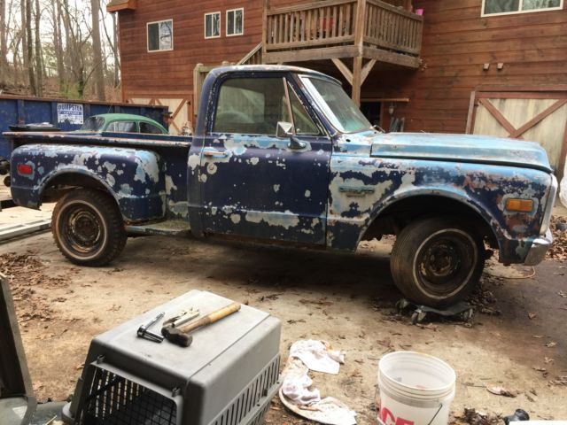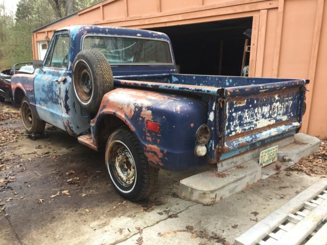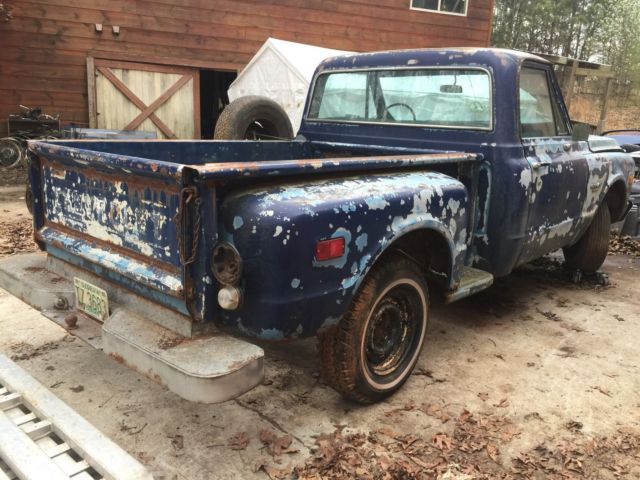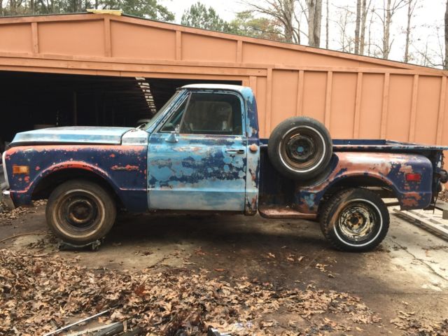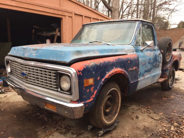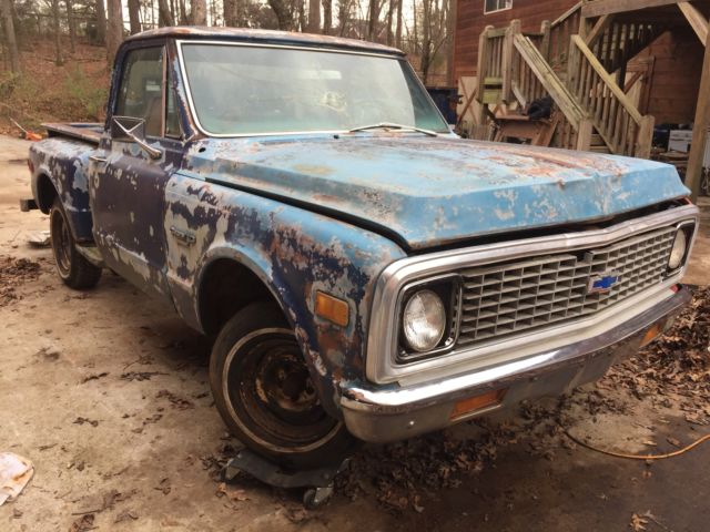 1971 Chevrolet C10 Custom Deluxe - Short bed - Step side with DISC BRAKES and a 12 bolt rear end. The truck does NOT run or drive! Original numbers matching 307 V8 with 3 speed manual transmission. The odometer reads about 23,000 - which may be actuate as it has been sitting since 1980. When I had this towed to me, the rollback tow truck driver hooked his winch cable to the steering drag link and bent it. It's an easy fix, I just wanted to be sure that I mentioned it. Originally medium blue The truck will need new inner and outer rocker panels on BOTH sides. However this truck is more solid than most! The floorboards are very decent. i only found 1 hole in the floor. Please check out the pictures and give me a call if you have any questions. I can also text more pictures if you would like to see more. 404-488-1456 - Please leave me a voicemail or text if I don't answer. I'm located near exit 11 off of GA400 or exit 19 off of I575 I have CLEAR Georgia transferable registration in my name - The $250 PayPal depoist is Non-refundable and must be paid with 24 hours of me accepting your offer. The remaining balance MUST be paid in cash or by bank wire! I will NOT accept PayPal or checks for the remaining balance. The full payment must be made within 7 days.