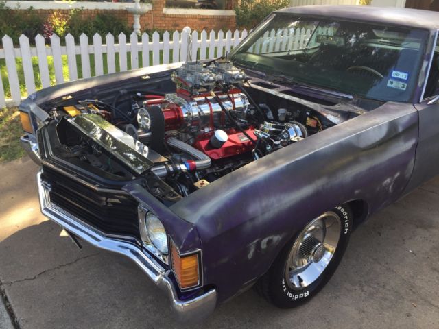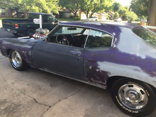 Brent Housley clicked buy it now but did not contact me or pay the deposit, so I am re-listing my car...... Tilt Steering Column Push Button StartEstimated HP; 750+Much, Much More!!!Clear Blue Title. Contact me for itemized parts list. Drive train has approx. 50 miles on it and hasn't been pushed hard yet. It has SS badging, but is not an original SS, which still needs the round Gages. It was originally a column shift bench seat car, but it now has buckets in good condition with console and tilt steering column. All new door panels and carpet. New door hardware. Tach, oil pressure, temp, boost, and digital dual oil temp gage (one out from engine, one out from cooler). All new front end including radiator core support, headlight hardware, grill, inner fender wells. This car has almost NO rust. Original floor pans, trunk floor and quarters. Very little rust in rear window area. Just needs paint prep and it is ready to paint your color.*Added* Car has current Safety inspection and Registration as of Jan. 2016*Added* Interior pics and Firewall Tag PicI reserve the right to end this listing at any time due to the car being listed in other media.VIDEOS Youtube videos;Search "1972 Chevelle 454 6-71 Blower" for Youtube videos, or contact me for linksASKING $25,000 OBOTRADE - I will trade for a 69 Camaro, or 69 Camaro project car and cash depending on the state of the Camaro. Thanks for looking!