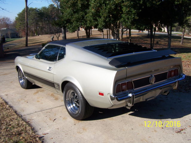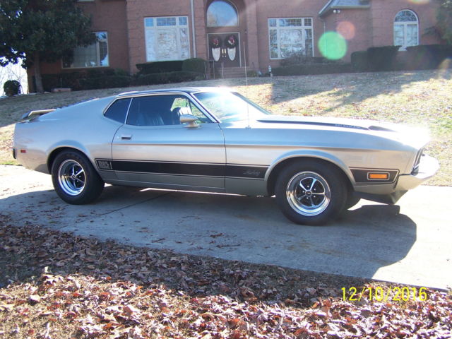 THIS IS A PRETTY RARE MUSTANG ACCORDING TO THE MARTI REPORT NUMBER 5012 I APPLIED FOR AND GOT FROM MARTI AUTO WORKS, THE NUMBER ONE PLACE TO AUTHENTICATE A AUTOMOBILE'S HISTORY. 134,867 FORD MUSTANGS WERE BUILT IN 1973 35,439 WERE MACH 1 CARS of them 9,885 CAME WITH 351-4V ENGINES 3,316 OF THESE HAD 4-SPEED MANUAL TRANSMISSIONS 138 OF THESE WERE PAINTED LIGHT PEWTER METALLIC of which 78 HAD BLACK KNITTED VINYL BUCKET SEATS 25 ONLY WERE EQUIPPED WITH 3.25 TRACTION-LOK REAR AXLES 11 CAME WITH AM/FM STEREO RADIOS 4 ONLY WERE PRODUCED WITH RIM-BLOW-DELUXE STEERING WHEELS 3 ONLY OF THESE HAD CONSOLES AND, 1 ONLY WAS ORDERED WITH A BLACK VINYL TOP 3F05Q152182 THIS CAR IS THAT FORD MUSTANG MACH 1 THIS CAR ALSO HAS DEALER INSTALLED AIR CONDITIONING WHEN NEW THIS CAR HAS DEALER INSTALLED RAM AIR SYSTEM WHEN NEW I HAVE AFTERMARKET WHEELS ON THE CAR AT THIS TIME BUT I HAVE THE ORIGINAL MACH 1 WHEELS AND TIRES STORED THAT GO WITH THE CAR. ( I did not want to have them damaged, they to are sort of rare ) The car has had one repaint since new. It starts, runs and drives great. it has always been stored in a garage under dust cover. this is an opportunity to own a pretty rare one of a kind 1973 Ford Mach 1.