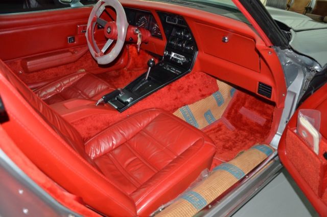 This amazing time capsule has been in my family since new in 1978. Stored in my parents garage from 1978 to 2010 then transported to Georgia where it has been garage kept for 7 years. This is a very special car. All 1978 Corvettes were badged as "25th Anniversary" models. The two-tone paint option was extra cost. Red Leather Interior with L82 engine makes this the one for the collector. 1978 was a landmark year for the Corvette; America's Sports Car! HIGHLIGHTS - Incredible Survivor All Original with a mere 15 miles; perhaps the lowest in existence! - One owner since new in 1978 - Original Window sticker: $12,773.21 still intact on passenger glass - Fully documented, photos, and original title - Original owner's manual - Original factory build sheet - Desirable L82 350/220 HP V-8 engine - Aluminum wheels with original optional 60-series Goodyear tires - AM/FM radio with 8 Track Player - Interior clock, and lights still work - Tilt-Telescopic steering wheel with original factory plastic leather wrap - Original factory corvette cardboard carpet protection fully in tact on passenger side, some on driverâs - Power steering, power brakes, power windows, power door locks - Sold new at Hopkins Chevrolet, New Carlisle OH - Enclosed transport from Kentucky to Georgia 2010 - Two Tone Silver/Charcoal - Stunning contrasting Red Leather Interior - Paint, interior, engine, transmission are 100% original I know the Corvette market very well. My family has been enthusiasts, collectors, and dealt in Corvettes for over 50 years. If you are serious about owning a C3 with tremendous value appreciation potential, this may be the chance of a lifetime! Any questions, call: (678) 727-6978