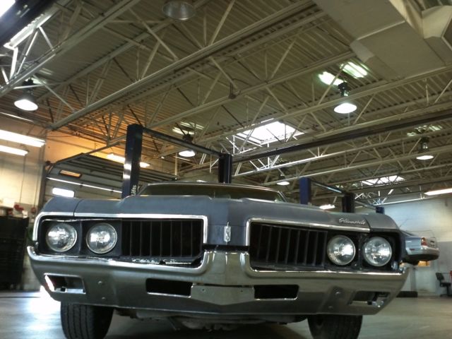 car is all apart not driveble engine out got all new crome Edelbrock parts waiting for it ..crome edelbrock valve covers torquer intake manifold performance chains 480 lift cam lifters carburator everything brand new Edelbrock paid over $1300 for complete kit..turbo 400 transmission rebuilted painted ready to go onfirst picture is current state of the caronly thing this car is missing is front seats and rear seat (got rear back rest) carpet and door panelsprimer is faded brought from arizona to chicago year a go could be put together in a wheek by mechanic to be drivible for the rest of the restoration new front and rear oem bumbers comes with original OEM oldsmobile rally wheels black and crome in mint condition with tires on themfloors and trunk still got factory clear coat on itunder the car no rust fuel lines and brake lines still got factory clear coat on itframe zero rust no frame or body restoration need solid as tankwas told from couple of car builders that they newer seen car from 60's this solid around here a lots of extra parts included extra tail lights and all 4 extra windows for more HD pics text at 2242100361 i have 800 pics every inch of the car