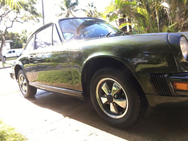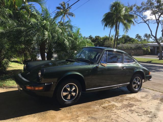 Relisted Due to non paying bidder: jdblmft ( James Boyer) 1976 912E Numbers matching (per Porsche COA specialist) VIN: 9126001767 Engine #: 4061794 138,552 miles originally silver on black but painted 2016 Porsche racing green. Been in Texas most of its life and came to Hawaii in 2014. Its Been in dry storage facility here and has Zero structural Rust. Maintained by porsche enthusiast and orginal motor runs strong(see video below). Webers recently installed. Interior redone in 2015. Solid under carriage. Comes with 14 inch Fuchs as pictured. This vehicle is driven and registration tags are current. This vehicle turn key and ready for export any where in the world. I can help assist with shipping. its about $1050 to West Coast, $1700 to East coast and $2600 to Europe ** Compression is 170-175 across the board. + New Rubber was intalled when painted. + New Bilstein shocks at the same time+ New Short shifter shifts smoothly through all gears+ comes with Spare and Jack - Tach isnt hooked up for questions call or email: 808-728-1248 Vintagestatus@gmail.com For 100 HD pics click: HERE Watch >>>> Video of idle, revs and drive bys Here: ____________________________________________________________________ Terms of sale: Seller shall not be responsible for the correct description, authenticity, genuineness, or defects herein, and makes no warranty in connection therewith. Seller makes no warranty as to accuracy of mileage. Vehicle is sold in the AS-IS Condition. No allowance or set aside will be made on account of any incorrectness, imperfection, defect or damage. Any descriptions or representations are for identification purposes only and are not to be construed as a warranty of any type. It is the responsibility of the buyer to have thoroughly inspected the vehicle and to have satisfied himself or her self as to the condition and value and to bid based upon that judgment solely. The seller shall and will make every reasonable effort to disclose any known defects associated with this vehicle at the buyer's request prior to the close of sale. Seller assumes no responsibility for any repairs regardless of any statements. Vehicle must be picked up within 21 days of purchase date or will include a storage fee of $30 a week.