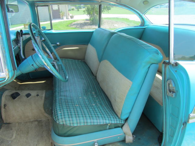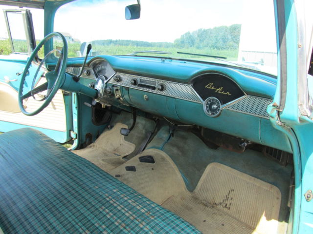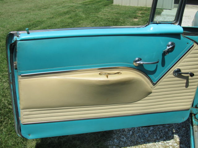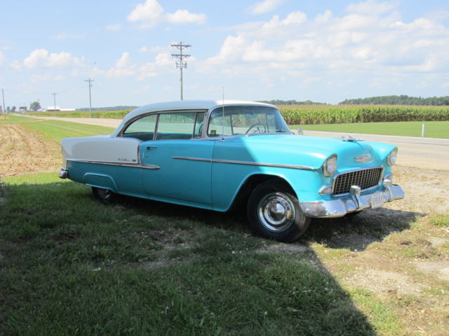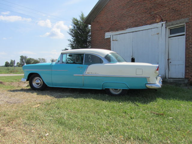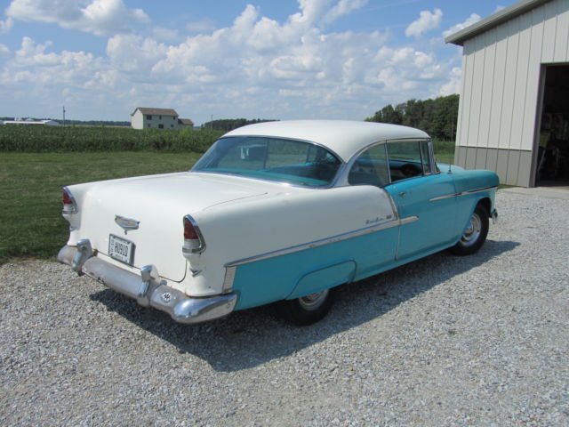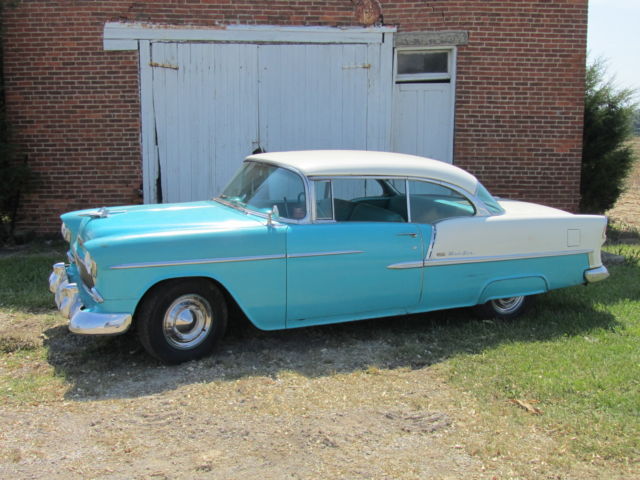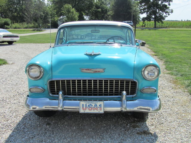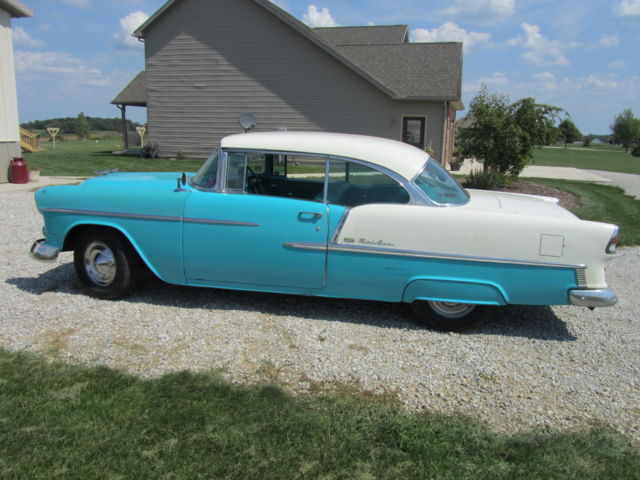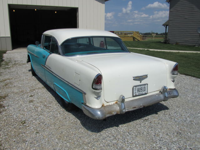 Up for bid is a 1955 Chevrolet Bel Air two door Hardtop. It has its original 265 V8 and automatic powerglide Transmission that have never been removed from the car. It is India Ivory/Regal Turquoise in color with matching interior. The car runs great and starts at a flick of the key. It drives nice but the brakes do pull. The car has been repainted at some point in its life and some body work was done at that point. I think this was a long time ago, in the 70`s I'm guessing. It has some or the typical Bel Air issues but Very solid for the year. The rocker panels will need work and behind the rear bumper. Also on the side of the trunk is some rust by where the original jack instructions remain. The interior is very nice for an original interior, but it has had the lower covered at one point. All the windows roll up and down as they should. There was original paperwork in the glove box, some instructions that hung on the dash when new and some other instructions as well as the original keys. The car was purchased 4 blocks from the dealership it was sold new at. A woman bought it new in 1955 and kept it the rest of her life , passed it to her son whom did the same. I purchased it from the estate. Please look at all pictures and feel free to call or text me after 3:00 P.M. with any questions you may have at (937)658-2717. If you do text before 3 I will reply as soon as possible as I work third shift. The car is for sale as is, where is with no warranty. It is the buyers responsibility to arrange shipping, but I will do what I can to work with shippers. I will require a immediate deposit of $300 at auction end with the balance due within five business days of auction close. I reserve the right to end the auction at any time as it is for sale locally.