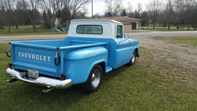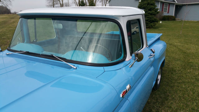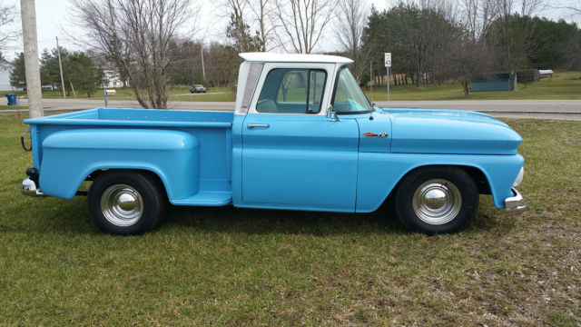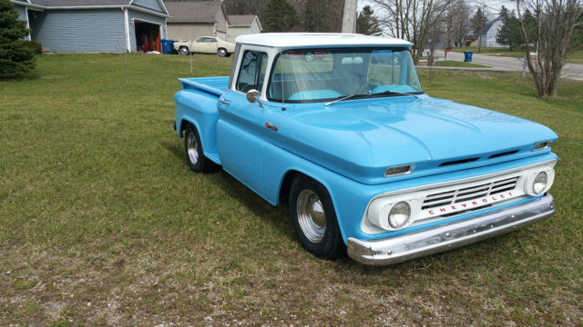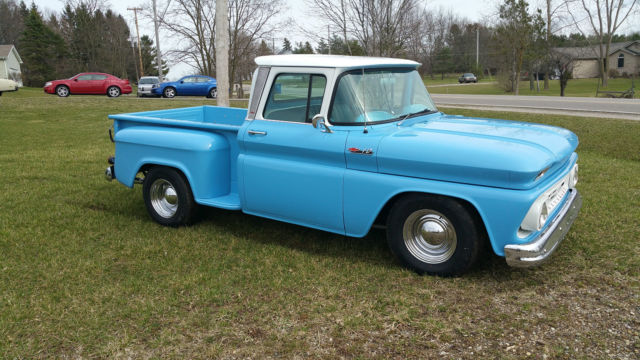 1962 Chevy c-10 stepside short bed 327 with camel back heads holly 600 cfm HEI distributor runs very good has about 9500 miles on it with a turbo 350 trans with the same miles lowered front 5 inches rear 4 inches tilt steering wheel and new steering wheel new digital dash panel has mph , Tachometer , Water Temperature , Voltmeter , Oil pressure , gas gauge lights up in blue new 3- row aluminum radiator , electric fan power steering power brakes front disc new , tires , shocks , rear lowering springs , front spindles , disc brakes , rear drum brakes all the windows are new with factory tint windshield , back glass , door glass , vent glass new windshield and back glass rubber seals and door vent window rubber window felt , door weather strips new door handles , emblems , radio am/fm cd , speakers , carpet , seat upholstery new oak bed wood , polished stainless steel strips and bolts , tail lights the body was professional done it was completely disassemble and stripped was in very good shape but does have new fenders inner front fenders and core support all from amd auto metal direct it has all ppg paint dbc , clear and primers all top quality all body and paint work was just finished about 1 mouth ago before bidding ask questions 810-853-1513 phil you can call text or email is for sale locally i reserve the right to end at any time is being sold asis where is with no warranties or guarantees a $500.00 deposit do with in 24 hours of end of auction can be payed with paypal the balance is do with in 5 days after end of auction cash or wire transfer to my bank account not paypal no checks of any kind will be accepted no refunds buyer is responsible for any shipping charges
