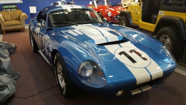 To celebrate the 50th year anniversary Shelby offered only 50 Daytona Coupes. CSX 9960 NUMBER 11 OUT OF 50 Special gold 50th anniversary badging, logos, and features. Air Conditioning, Power Steering, brakes, windows and locks Shelby issued MSO and registered in the Shelby Registry. White ceramic coated side pipes Engine 351 WITH 8 STACK EFI ENGINE Shelby 427 Cubic inch 565 horsepower and 550 pounds of torque. Shelby aluminum 356 T6 CNC machined Windsor block etched with Shelby logo and correct casting numbers. Shelby/AFR 205 aluminum heads with Shelby logo etched signature. Billet gears, Mechanical fuel pump and high volume oil pump. Aluminum timing cover and Edelbrock Aluminum water pump Shelby dual plane intake manifold Aluminum Core Radiator Shelby signature aluminum valve covers with black accent paint Shelby brakes with vented rotors Shelby 50th Anniversary labeled leather seats Original style Aluminum 15" FIA Wheels painted white with polished lip and 15" Avon tires with Good year raised letters. Sound Deadening and Heat Dissipation System upgrade option from Shelby Shelby custom black carpeting 50th anniversary side badging Oil cooler Daytona Coupe Decals 50th anniversary floor mats Engine plate with Shelby CSX identification numbers Matching number engine, block and transmission already installed $70,000 installation cost Shelby original Style Round Frame Stewart Warner Gauges THIS CAR WAS FINSHED BY SHELBY'S PERFERRED AND RECCOMMEND ENGINE PROFESSIONALS I BELIEVE THIS IS THE NICEST 50TH ANNIVERSARY DAYTONA IN EXSISTANCE MUSEUM QUALITY CONDITION ****Please note mistake on title description the car is not aluminum with stripes e bay will not allow change until next listing