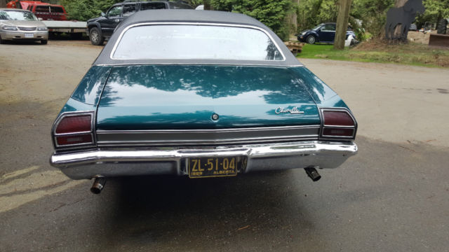 1969 Chevrolet Chevelle 2 door hardtop, 350 v8 with an automatic transmission, bench seat with column shift. The car has Crager SS mags with headers and a dual exhaust. The car runs and drives and would be a good drive it while you work on it project. The paint is recent and is nice and shiny but with a close inspection there are some flaws, the interior is presentable it has been upgraded to a black bench seat from the original greed while the other trim panels are still green. The car is being removed from a collection because of a lack of space, it was purchased from a vintage car auction so I don't know a lot of details before we got it. Please if you have any questions regarding the condition of the car please don't hesitate to give me a call. 778-773-8393. Adam Shipping: I have lots of experience exporting and can gladly help exporting overseas or I can have the car imported to the US and delivered to a holding yard in Blaine WA for $1000. I have lots of contacts were the car could be taken and loaded into a container as well.