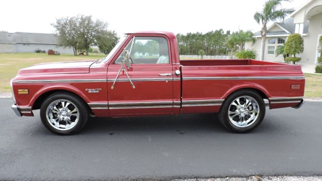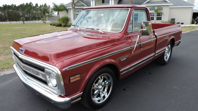 1970 Chevrolet CST C-10 VIN - CE140B136141 mileage-exempt This is one of the finest driving trucks I have driven in a very long time. Just a lot of fun, a beautiful eye turner. - Ground up restoration, no expense spared- Very nice sounding 454 big block- Square port heads- Dart hi-rise intake- Billet distributor- Quick fuel carborator (Q.F.T)- Taylor wires- Moroso waterpump- Chrome alternator- Hooker super comp headers- Nice shifting Turbo 400 automatic transmission- B&M shifter- Chrome hood hinges- New Boss 18" chrome wheels in the front, and 20" in the rear- New tires- Ice cold air conditioning- Power windows- Lecarra wood steering wheel- AM/FM-CD player with Bluetooth- Beautiful custom leather interior, high quality This is a very high quality built show truck. Laser straight body. Fit and finish excellent. Show qualtiy paint job, Fire Mist Red, base coat/clear coat. mileage-exempt Call Chad for details/photos/ questions/ reasonable offers 863-661-7517 Note this and all vehicles sold by us on carforsale.com, Ebay.com or our Facebook page and website are as/is where is. The information, products, and services published on our website may include inaccuracies or typographical errors. R&L Auto Wholesale and/or its respective suppliers make no representations about the suitability of the information, products, and services contained on this website for any purpose. All such information is provided "AS-IS" without warranty of any kind.If mileage is shown on ad /picture note that all vehicles title will come back EXEMPT on the title due to the age of the vehicle and FL law.