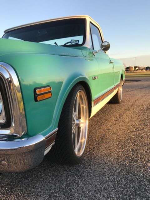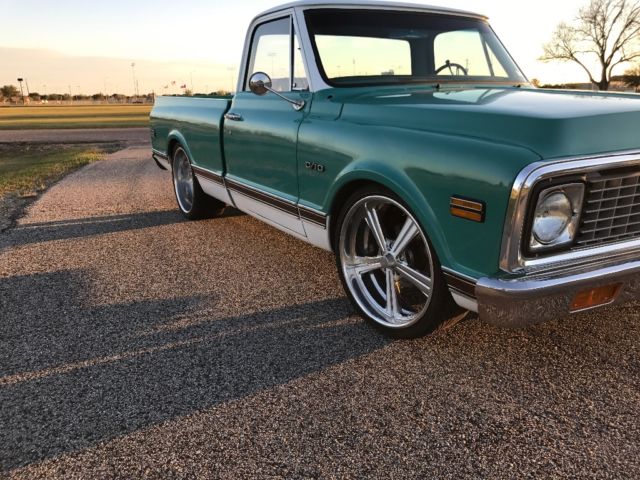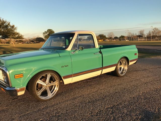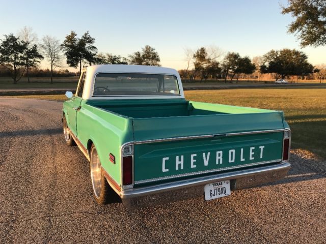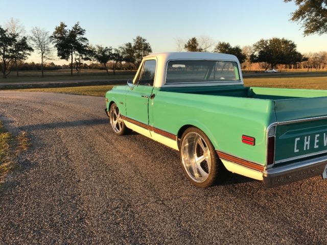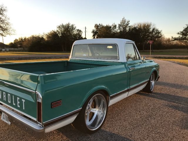 May consider trades and reasonable offers. No junk or low balls!!!!Truck is very straight and rust free. I'll do my best remember everything that was done. New crate 350 sbc with only 348 miles since rebuild Freshly rebuilt TH350A/C with factory style dash ventsPolished AC compressor Rebuilt 12bolt rearend Billet serpentine belt setupCeramic coated headersAluminum 3 row radiator with dual fansChrome power steering pumpChrome alternator Painless wiring harnessAll new gaugesNew instrument clusterBeautiful dark wood bed with stainless stripsRelocated gas tank Lowered 4/5 with spindles & springs Frame was sandblasted and powder coated All new bushings Disc/drum setupBeautifully hand crafted dark brown leather interior Sculptured bench seatDoor panels have dark wood inlayHeadliner with wood inlay and custom led dome lights Custom speaker box behind seat with 2-kenwood amps and 2-10" subs, custom molded kick panels with dual speakers and kenwood head unit. 22" staggered Intro billet wheels22x8.5 22x11 custom offset fit perfectly in wheel tubs. All new lower wood grain trim, grill & cab trimDriver quality paint..not a trailer queen. This truck is driven to local shows every weekend. Feel free to email or call with questions or offers. I can help with shipping arrangements. Open or enclosed transport! $500 deposit due immediately following auction ending. Balance to be paid by wire within 3 days. Truck is for sale locally and I do reserve to right to end early. Sean 832-729-7067