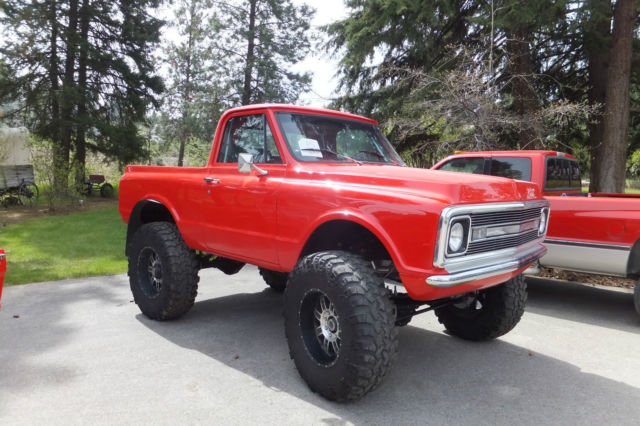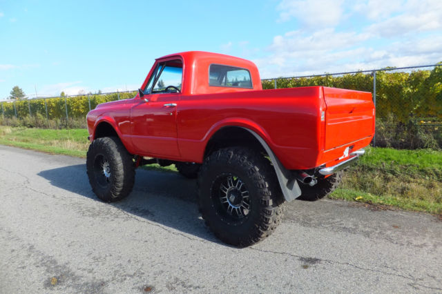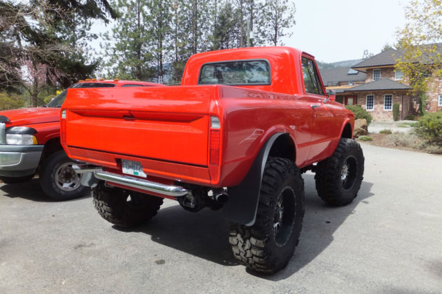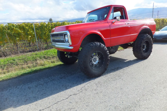 1969 Chevrolet SHOW TRUCK1 off Custom BuildStated as the Truck that never was!Priced to SELL! It began life as a Standard Blazer Utility and lived a happy existance in Callifornia.Then was purchased in Spring of 2006 by a builder from the outskirts of LAThere is was torn right down to nothing and built to what you see here. a amazing 1 off 1969 Blazer pick up achieved by a professionally grafted 1967 Cab back onto the body to be a super short short bed truck AMAZING BuildNO Rock left un turned ( as per the like a rock slogan for Chevy) the truck has every nut and bolt done Full frame off where everything is new or restored.Chevrolet 3/4 running gear with a new fully built 350 that is NOT BROKEN IN YET. The box is sprayed in Armourguard to last foreverthe tank has been relocated to the back of the truck below the bed. ( which is a smart move away from the cab) Both the front at the rear have custom roll pans and custom bumpers The paint and body are simply amazing .. paint job alone was a reported $25,000 where every angle of the truck is done for show top to bottom front to back In the car it has new seats all new gauges a roll cage simply the works... this is a quality show truck if this was in scottsdale i would expect it to hit between 40 and 50G on the block and so would you.. The Truck was Sold at Vegas auction in the fall of 2009 to the present owner. Its placed in his extensive and amazing collection. He has driven it very little.The truck has gone thru a full mechanical inspection and is fully certified for the road. Truck comes with your choice of rims and Tires EITHERThe chrome 38 15 by 17 Iroc or the black Rockstar 20 rims with 41 inch Swampers. Both sets like new. The truck cost approx $100,000 to build ... the present owner has just over half of that into the truck after buying it. This is priced to sell. you can not duplicate it for under 100,000 USD and it only has 350 miles. do not hesitate to call or email for any questions .... If you want any more pictures or information we are available to assistText or call 250 801-3446