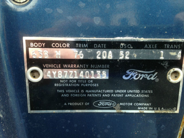 | Year: | 1964 | VIN (Vehicle Identification Number): | 4y87z140133 |