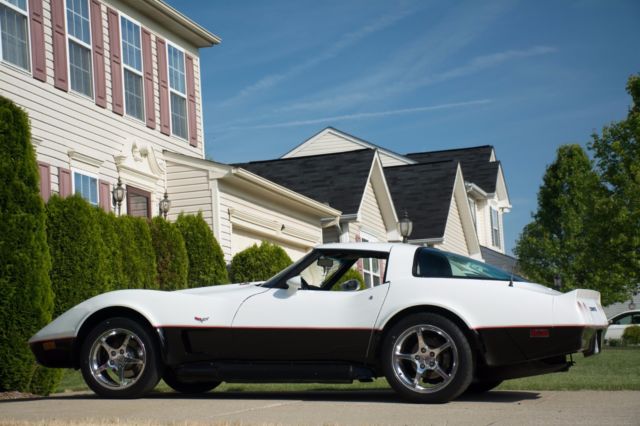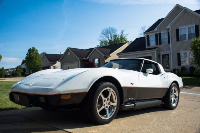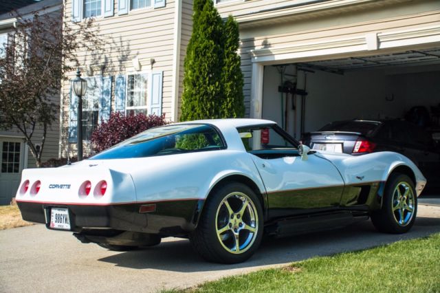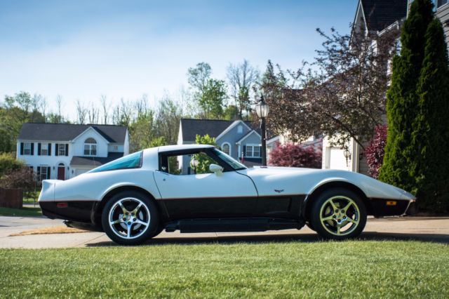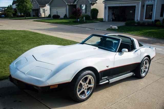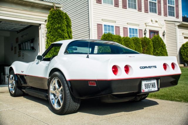 Lots of recently replaced/maintained parts: new brakes on all four corners including calipers, a new battery, spark plugs and wires, ignition cap and rotor, steering coupler (aka rag joint), half shaft U-joints, windshield, weather strips, alternator, power steering pump, and some interior parts. Solid bird cage. Always garaged. Everywhere I go, someone always tells me how nice this car looks. Engine and transmission were rebuilt about 3000 miles ago by the previous owner, who unfortunately died shortly after. He also painted the car this two-tone scheme with the 1980-1982 rear bumper and tail lights for some subtle personality. The leather seats are showing some wear, but still maintain their cushiony softness and beautiful sheen.  It's got brand new floor mats, a reconditioned steering wheel, brand new horn button, new HVAC unit and vents, kick panels, carpeted console panels, dome light, and Pioneer speakers in all four corners with bluetooth head unit.  The side pipes are a custom kit with Heddman full length sidepipe headers with fiberglass covers. The 4' mufflers provide a full, rich sound that is free of raspy garbled tones.  The car is almost 40 years old, so don't expect perfection. You're going to have the minor things these cars are going to have -- unless you are buying a $25k restomod, you will not find a later C3 in this price range that looks this nice! It needs nothing to enjoy the summer. Why would I sell a car this beautiful? Because I'm buying another Corvette, and need to evict one of my toys to free up space in my 2-car garage. I'll even include the Chilton's manual for you, a $15 value. I am located between Cleveland and Akron. I work weird hours but I'll make time for you if you're a serious buyer.