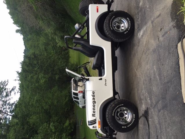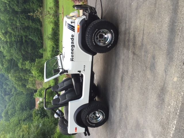 This is a restored 79 cj 7 I bought this vehicle as a winter time project and have it 99% completed. I completely redid the tub with all new floor pans side panels tail gate and rear quarters. The only thing I left original was the hood and firewall. The front fenders are fiberglass. I painted it super white and undercoated the tub and inside of the tub with a heavy duty bed liner. The frame is solid and was sanded down and undercoated then capped with a rubberized paint. I found an old tire swing and had it blasted and coated with bedliner to match the tub. I completely put a new front end on this jeep ball joints tie rods bearings everything new. I replaced all the brakes calibers rotors pads shoes lines etc. I also replaced all the fuel lines and and put a new 2 barrel weber carb. I treid to use some original stuff so the back seat was in perfect condition so I used it and but bought two new front seats risers and sliders on both front. It has a new gas cap head light rings with a new decka battery. The only thing that I didn't replace on the jeep was some little things like the gauges and the wipers steering wheel. I wanted to leave this jeep a little bit original. It has new front front end alignment and ready to rock the town. I bought 5 new wagon chrome wagon wheels and put 33x12.5x15 bf Goodrich on it. It also has a new 2.5' rugged ridge lift kit. The only thing this jeep needs is a killer stereo. I do have the original hard top that is in perfect condition and 2 full steel doors these are not complted but I do have them and will let them go with the jeep. Please feel free to call or request more pictures 606-424-5088 I am relisting bc buyer had no contact or no payment I got crazy and added a Kenwood KDC-X500 and some Pro Acoustik 750 watt marine speakers 600 value