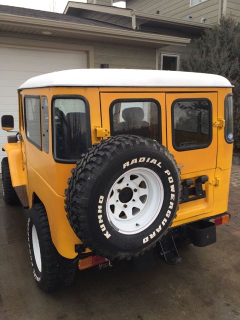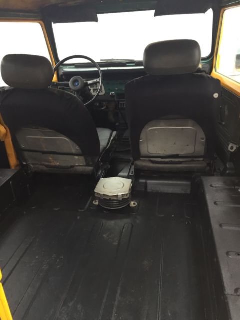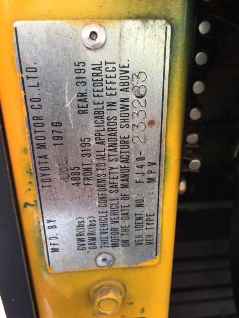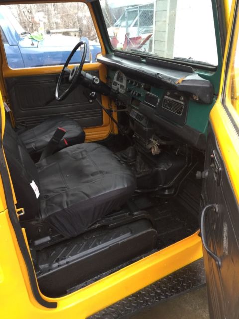 1976 Toyota FJ40  This vehicle has no frame damage, and no rust damage.Exterior paint job is not great, and as you can see from the interior photos it used to be green. Body is in excellent shape, no dents or rusted out places.I have recently purchased and prepped for paint two original rear jump seats Rebuilt engine and carb, new fuel pumpNew transfer caseNew wheels and tires New front disc brakes and rear brakes- rear brakes completely rebuilt drum brakes New clutch master and slave cylinder New muffler New shocks, steering dampener, spring shackles and bushings Runs great- needs some finishing touches It runs and shifts extremely well.  Speedometer reads 20,880 miles, however actual mileage is unknown. Known work that needs to be completed: Some wiring work including, wiper blades, backup lights, interior dome lights, speedometer and oil pressure gauges.Currently has a push button start with a kill switch, ignition would need to be rewired and keyed if you want to return it to stock.Top needs to be painted and needs a headliner, as well as new seals all the way around.There is currently no radioFor someone willing to put the time and energy into this truck it could be an amazing restoration. Sale is final, no returns or exchanges.