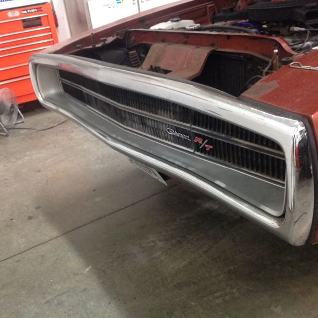 70 Charger R/t 440 4speed nom engine . Rest of drivetrain is. Car needs quarters and truck floor interior is pretty darn nice. Grille is nice. Tail panel trim is nice headlight doors work correctly. Runs and drives great rebuilt front suspension. New tires and many other parts. Email with questions. Body: nice hood . Body is decent overall with some surface rust. Will need quarters ,trunk floor and rear valance and corners. Rails are good as is the torsion bar member . Drivetrain: 440 is not the original one ,it is a 68 engine. Runs awesome. New clutch. Trans shifts nice and is the original 18 spline Hemi 4 speed. Threat is the factory trac pack Dana 60 3.54 works great and quiet. Shifter mech and handle are both new. Interior : the interior is nice with only thing really need is door panels. They aren't too bad but not new. Shifter is new as is the carpet headliner and seat covers. Suspension: new ball joints, tie rod ends and sleeves. Rebuilt steering gear box with no leaks . New pitman arm . New idler arm. Upper and lower control arm bushings. Strut rod bushings. Sway bar links. All four shocks . Also added rear sway bars. Handles great! Radiator was rebuilt by Glen Ray radiator with their max cool 3 row core. Brakes are front disc rear drum combo as factory and work great. All of the guages including the tach work as they should. Great rare car to restore! Drove the car 350 mile round trip today. It worked great! There is a pic of the cluster that shows the guages as we were cruising down the interstate. Any question call 563 568 7331 thanks, Brian