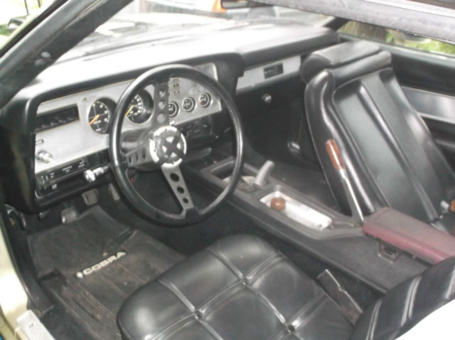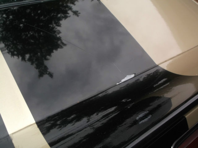 CAR IS PRETTY SOLID FOR BEING 40 YEARS OLD BUT DOES HAVE SOME COSMETIC DEFECTS .....IT WAS JUST INSPECTED A FEW MONTHS AGO PASSED WITH NO PROBLEMS....RUNS DRIVES AND SHIFTS SMOOTH.... INTERIOR IS PRETTY SHARP HAS THE ORIGINAL COBRA MATS WHICH ARE HARD TO FIND... SEATS ARE NICE .... HORN WORKS BUT BUTTON IS COMING OFF THATS WHY THE TAPE ... CAR HAS HURST SHIFTER AND THE ORIGINAL 4 SPEED BALL ALSO IN CONSOLE TRAY .... STAINLESS METAL AROUND GAUGES IS NOT PERFECT ... THIS DOES HAVE A RARE OPTION ... REAR WINDOW THAT POP OPEN ... PAINT.. THE HOOD IS THE WORST OF THE PAINT AS SEEN IT IS CRACKED AND CHIPPED OFF .... THERE IS SOME OTHER PAINT DEFECTS AS SEEN IN THE PICS ... THIS CAR DOES SHOW SOME ORANGE PEEL IN PLACES AND IS NOT SHOW QUALITY... HAS SOME CHIPS AND SCRATCHES ..... BODY... RIGHT REAR WHEEL ARCH LOOKS TO HAVE SOME FILLER IN IT THERE IS A PIC OF IT ..UNDER THE HATCH IS PRETTY SOLID BUT AS SEEN PAINT IS CRACKED SOME ON THE CORNERS ..UNDER THE CAR IS PRETTY SOLID HAS SOME SURFACE RUST ... UNDER THE HOOD EDGE OF APRONS HAVE SOME RUST...CORNER OF RAD SUPPORT ALSO SOME RUST AROUND THE UPPER DOOR HINGE CAR IS A HEAD TURNER AS IT IS CAN BE DRIVEN DAILY AS IT IS OR WOULD MAKE A GREAT REPAINT FOR SOMEONE WHO WANT A SPECIFIC PAINT JOB