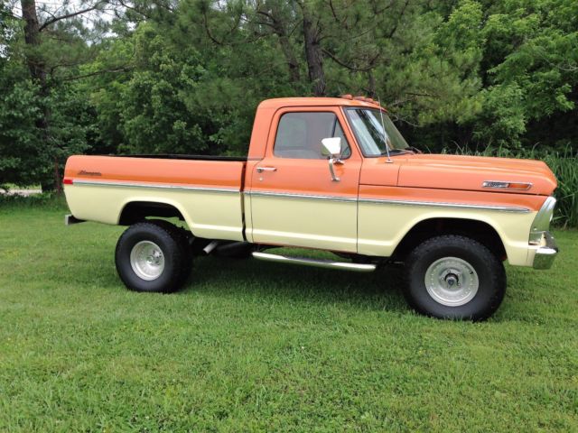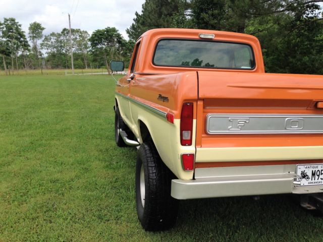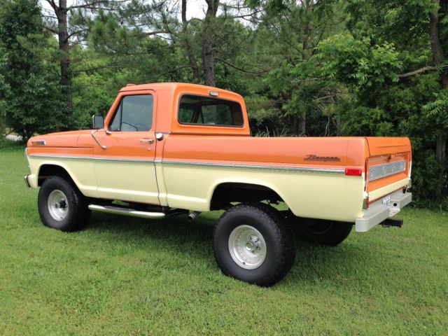 Yes I listed this under Bronco want Bronco Ebayers to see it as well.. Hi, up for auction is my rare rust free..1969 Ford F100 4x4 shortbed. This truck is equipped with a great running 360ci,4 speed manual trans, 1979 Bronco front and rear differential with 3.50 gear, Power steering and Power Disc brakes (front disc/drum rear) These trucks are rare 67 to 72 short bed 4x4 are very seldom listed on Ebay I've owned this Ford for over a year its been a good all around truck. The paint is approx.1 year old (I did not have it wet sanded and puffed) I removed the front driveshaft by choice (have not put it back in) 4 wheel drive worked well prior to me removing driveshaft. I do not off road so I didn't need it front drive line. It is included This is a factory 4x4 that has been updated with power steering and power disc brakes. both vin# match door plate and the right frame rail.The F11 in the vin# indicates factory 4x4. Has brand new 33" tires, calipers, brake pads/shoes and brake booster. New door seals, vent seals and felt. New windshield and rear window seals. This truck starts and runs very well. Steers and brakes very well. I put the Ranger badging on. I had the local 4x4 shop check the truck over. The only thing was he said it will need a clutch in the next 10k. I will refund the deposit to help with the cost of a clutch replacement. The truck runs very well as it is now. The plate is a little thin that's all Clear title in my name You would be very pleased with this ATTENTION GETTER! I love it but I have a 55 F100 waiting on me to start.. **GOOD LUCK AND THANKS FOR LOOKING Ebayers with 0 feedback must contact me prior to bidding or I will cancel your bids. Sorry for the inconvenience Ford bronco, Jeep , F100 ,F250, F150, Highboy , Scout , Blazer