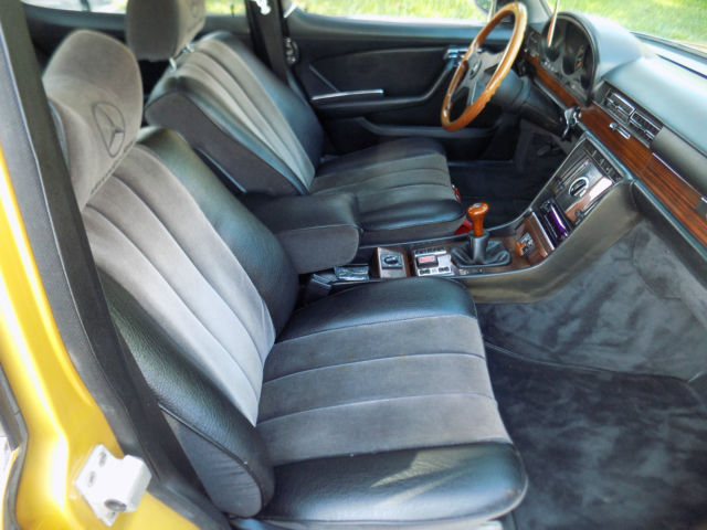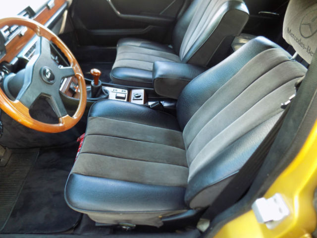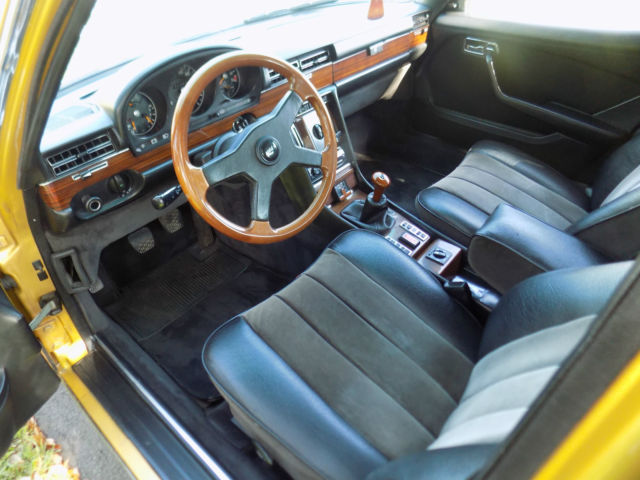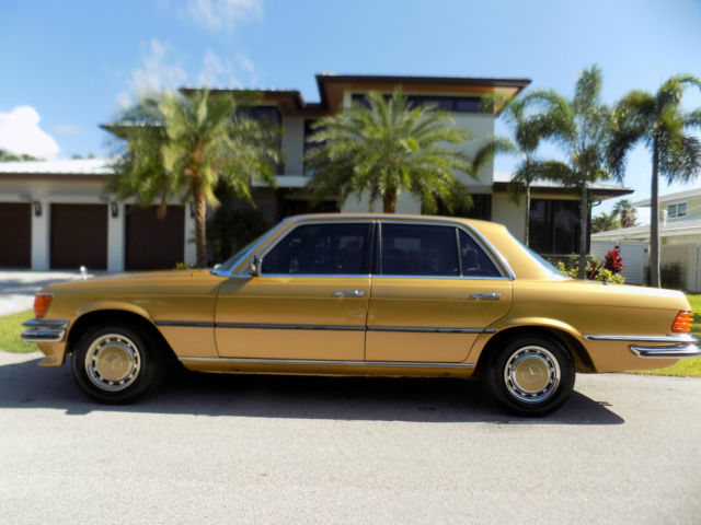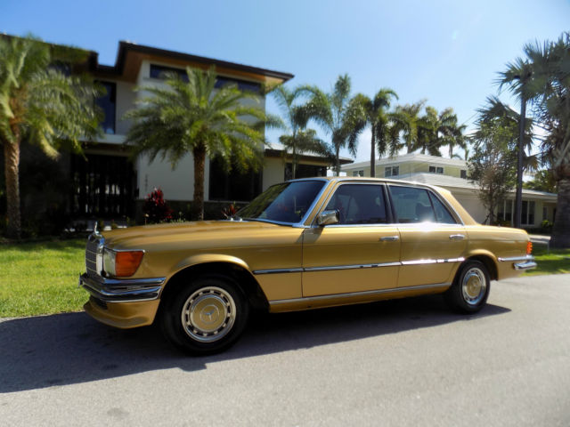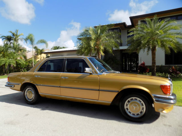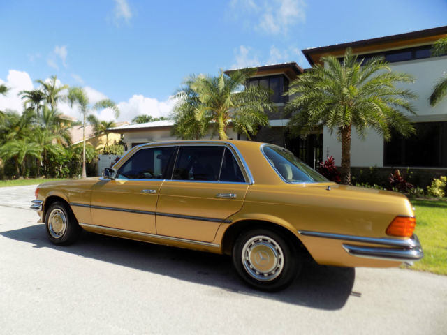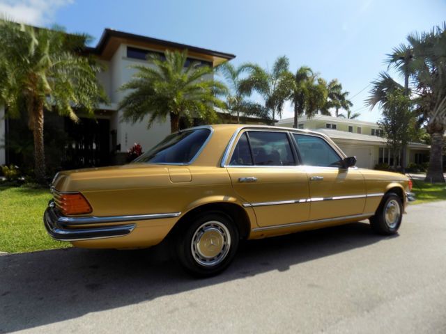 Up for sale is this beautiful and Rare 1977 Mercedes 280 Euro Spec 4 speed  sedan with 132,270 kilometers or 82,188 miles. The car was brought into the Us about 5 years ago. Its a 2 owner car and was originally owned by a collector in Hungry. The car was a show winner many times throughout Europe and also covered in magazine ad's. The Ikon Gold paint is Stunning. He painted the car 15 years ago and spent over 10 k . It looks better then most current new cars. The paint is super glossy and has no imperfections anywhere. Look at the engine compartment and you can eat off the wheel wells. The black cloth interior is also pristine and very cool. The seats are cloth and leather and the door panels are all real leather. The wood is pristine in the car as is the dashboard. The car has power window's . key less remote entry with an alarm. A very nice Cd player that sounds amazing with remote. The car has hot heat from the climate control but no Ac as it's a true euro car and it wasn't something they had in the cars back then. Mechanically she is a Gem. I did a lot of service to the car You can see how highly detailed the engine compartment is You can eat of it. Here is what was done . 4 new tires on the Original steel wheels with painted hub caps. New brakes , new steering damper , new ball joint's and tie rods , I had new valve seals put in the engine and also had the valves adjusted . A complete tune up with new cap and rotor . new plugs and wire's new spark plugs . Radiator was flushed with all new coolant.New battery as well.  The car starts Right up and idles very smooth . When u take off the power is awesome and the manual transmission shifts effortlessly. So if your looking for a Rare car and one that you can drive anywhere or take to a show then this is it. No Disappointments. The car shows like a new car in every way. Please read my feed back as I take pride in selling great cars. You can call me if you have any questions about this amazing car. Steve 954-464-3515.  I have clear title, books, 2 sets of keys and keyless remotes. full size spare tire is in the trunk with tools.