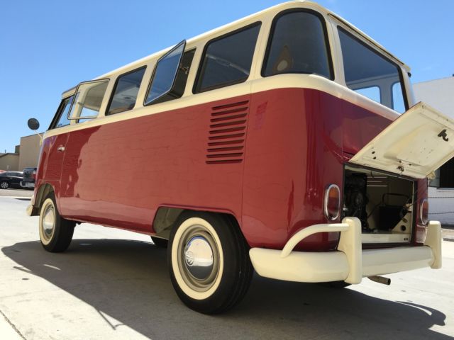 Hi guys, We do have this very nice 1967 vw bus 15 windows for sale right now in los angeles. Its been inspected and everything on this bus is in great working condition and ready to go where you want: Engine, transmission, brakes, electricity is ready to go. The only thing we will do for the sale is to add a brand new perforated headliner. Interior is complete and in great condition.You can add as many options as you wish. We also take care of the installation for you. For example: Safari windows, side pop out windows, deluxe trim, roof rack...Turn on the ignition and let's hit the road! We are going to upload the videos tomorrow > Exterior:The bumpers are in very good condition. Classic turns in very good condition . The steering box is dry, tuned up. The bus is steering easily and the steering wheel is not loose while driving. The frames is awesome with no rust AT ALL DRY and CLEAN. Check out the pictures. The structure of the frame is excellent shape which could be considered as high as 8.5/10 minus the fact the the jack supports are not on the bus anymore. All new seals around. New paint color combination painted les than 6 month ago. 4 side pop out windows in good condition> Interior:The upholstery is brand new condition. Floor mats are in very good condition in the back and the front. Seats belts a re all there .Original steering wheel as well as horn. All new panels around. Uncut dashboard and original handle on dashboard,> Engine:- Recently rebuilt 1500cc single port- New battery> Transmission:Shifts perfectly> Brakes:Excellent brakes, smooth and very efficient with no noise or whatsoever.> Electricity:100% operational. New light bulbs all around. Everything work.> Options:We would be glad to help you make improvements on this bus according to your wishes like deluxe trim, safari windows, roof rack> Paperwork:Import documents which allow you to get a title in your state without any problems or Clean California title upon request and available within 2 weeks. We usually receive the California title within 2 weeks> Shipping: WORLDWIDE. Europe: $1595. Hawaii: $1850. Australia: $1600. Others: Shoot us an email. We use to work with DIRECT EXPRESS INC for years on 230w carob street, LA.