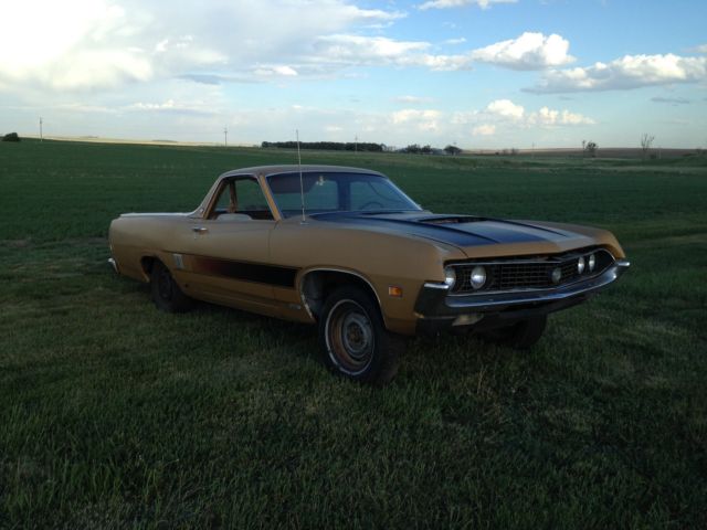 Great chance to buy a nice, restorable 1970 Ford Ranchero GT. These are not common cars and they did not make a lot of them. This car has a lot of potential but I have too many projects and would rather have someone work on this than have it sit around. -Engine - 351 Cleveland -Transmission - Automatic (FMX) -9â Rear End -Nice Solid Floors -All Nice Glass -Really Nice GT Hood and Front End, one dent in drivers fender -Solid Nice Bed Floor, No Rust in front of the bed by the cab, very little in back corners, see pictures. Some dents on inner fender wells. Engine is out of the car but everything is included to put it back together. Engine is loose and stored inside covered up. Rear quarters have normal repairable Ranchero/Torino rust, see pictures. Interior is complete and in decent shape, see pictures. Great restoration candidate or candidate to get running and driving. Gas filler neck is inside car. Gas tank was removed and cleaned a couple years ago and filler neck was not reinstalled. Extra tailgate included. -Buyer has 30 days to pick up vehicle or arrange pick up. -$500 Non Refundable deposit due within 24hrs of purchase -Title will be given to buyer when vehicle is picked up and paid in full. -For more picture or if you have any questions please ask. Thanks for looking