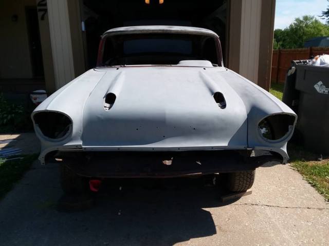 1957 Chevy 2 door hardtop sport coupe no engine no transmission. This is a very solid car with all metal work done both quarter panels were replaced in front of rear wheels.. All chrome and mouldings super nice close to new look.. Body is very straight very nice fenders, doors, quarters, floors and trunk all solid no rust through. There were new wheel wells welded in see pics. Frame is good with new Floor braces I also have a new body bushing set that goes with the car. I have both front and back windshield very nice shape. all interior trim is there including belair trim and rain guard flippers. I have all firewall parts also inner fenders. I DO NOT HAVE..ANY SEATS OR GRILL I ALSO DONT HAVE ANY SIDE GLASS AND STEERING COLUMN. This will be a no reserve auction I will have a clear title by July 1st..Buyer is responsible for all shipping costs and arrangements I can help load the car...$1,500 deposit is due within 48 hours of end of auction...full amount due when title arrives is fine..NO PAYPAL Thank you..