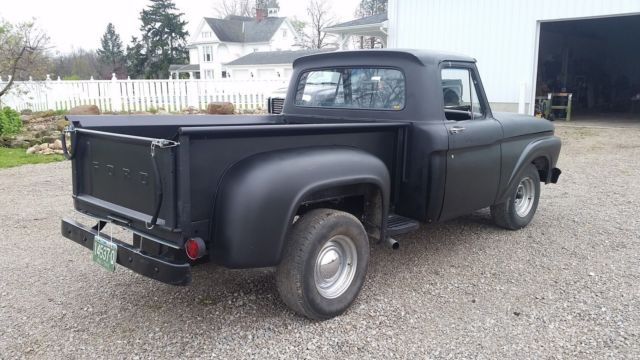 New zinc plated oil panNew front windshieldAuto meter brand gauges (fuel, oil, water, volts)New 20 gallon fuel cell with an8 line to a new mechanical fuel pump.Hedman long tube headersCustom true dual 3 inch exhaust with dual glass packsDual electric radiator fans on a switchSteering column rebuiltTransmission checked and new top seal. Never taken apart. New bushing in all leafsNew coil over rear shocksNew brake cylindersNew brake boosterNew brake linesNew carpetNew anti rattle and new window seals for front, rear and side windowsNew weather strippingAnti rattle and sound reducing spray, sticky mats and blanket.All lights work, has high and low beams, dims, new truck style led brake light strips, bed wood sealed with marine wood seal. Heat works, wipers work. Fuel tank removed from behind seat and put under bed. Needs tires and king pins. And a new gear for the speedometer. The paint is flat black just to get the metal covered. So it's not perfect. Little to no filler. The bed, frame, suspension, cab, doors, dash and bumpers were sandblasted and the frame and suspension coated in por15 and high strength frame paint, everything else was heavy primered to ensure the rust doesn't come back. Primered inside doors. And inside cab corners. Solid bed Steps and Solid cab stepsTons of extra parts such as the chrome front window trim, old doors, c6 Transmission, miscellaneous interior parts, have 427 parts too (thought about making it a 427), another steering column, 2 sets of OEM FoMoCo fuel gauge and valve covers, oil pans. Original exhaust manifolds, I'm sure I'm forgetting something. Maybe only a couple hundred miles on the restoration. So if you have questions or need more pictures email me at mlask13@yahoo.com and I will answer any questions. It is also for sale locally.