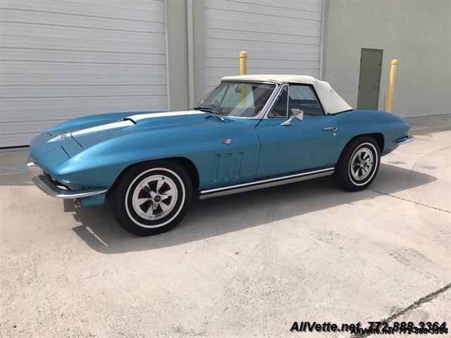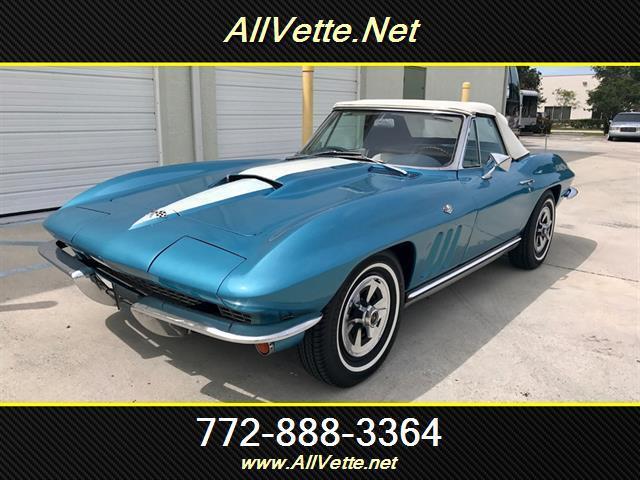 1965 Chevrolet Corvette Convertible 2-Door Convertible Exterior Color: Blue Interior Color: White Stock Number: 984 Mileage: Exempt Engine: 327/300 Fuel: Gasoline Transmission: 4 Speed Manual Warranty: As Is - No Warranty Title: Clear VIN: 194675S113768 60 Full-Size Photos Vehicle Features & Options Ask the Seller a Question Email this to a Friend Start Credit Application Vehicle Description AllVette is pleased to offer this 1965 Corvette Convertible with a Nassau Blue (FF) exterior, White/Blue Leather (451) interior and a White top. This Corvette is equipped with a numbers matching 327/300HP motor and a 4 speed transmission. Recent mechanical restoration just performed consisting of; clutch, flywheel was cut, new stainless exhaust, all new brakes, rotors, calipers, and brake lines, new tires, wheels and hubcaps, new heater core, carb, air cleaner, shielding, wires, rear spring, all new shocks, battery, cables expansion tank, and oil pan. Most correct factory components under the hood including correct shutter, shielding, fan and shroud, expansion tank and air cleaner. This is a great driver quality Corvette. CALL OUR SALES TEAM @ 772-888-3364 WWW.ALLVETTE.NET !!!WE BUY CARS!!! Corvettes, Muscle Cars and Trucks.... C1 and C2 corvettes (ANY CONDITION) C3's low mileage, C4's low mileage (1991-1996), C5's low mileage, C6's low mileage and must be 3LT or better and C7's low mileage. ANY OLDER muscle cars (must be done/no projects), NEW OR OLD (must be done/no projects) trucks! Also looking for EXOTICS AND MOTORCYCLES (MUST BE LOW MILEAGE). !!!!WE PAY FINDERS FEES!!!! BUY AND SELL WORLDWIDE! SHIPPING WORLDWIDE! FINANCING AVAILABLE! WARRANTIES AVAILABLE! WE DO IT ALL, ONE STOP SHOP FOR YOUR PRISTINE DREAM CAR! LOCAL DETAILING AVAILABLE FOR ANY OF YOUR DETAILING NEEDS ( please call for a quote ) MONDAY-FRIDAY 10am-4pm AFTER HOUR APPOINTMENTS AVAILABLE!!! Additional Photos click on a thumbnail to view full-size photos Contact Information Allvette Main Phone: (772) 888-3364 Alt. Phone: (866) 427-8388 Email: sales@allvette.net Vehicle Features & Options Vehicle Condition & History Shipping Information We recommend ShipMyVehicle.com for vehicle shipping. Dealership Information Allvette Main Phone: (772) 888-3364 Alt. Phone: (866) 427-8388 Email: sales@allvette.net Business Hours Weekdays: Closed Sat: By Appointment Sun: By Appointment Location 4644 SE Municipal Ct.Stuart, FL 34997 Dealership Map Visit Our Website View Our Full Inventory Ask the Seller a Question Email this to a Friend Start Credit Application Powered by View Our Full Inventory Learn More About Us Auction Views: