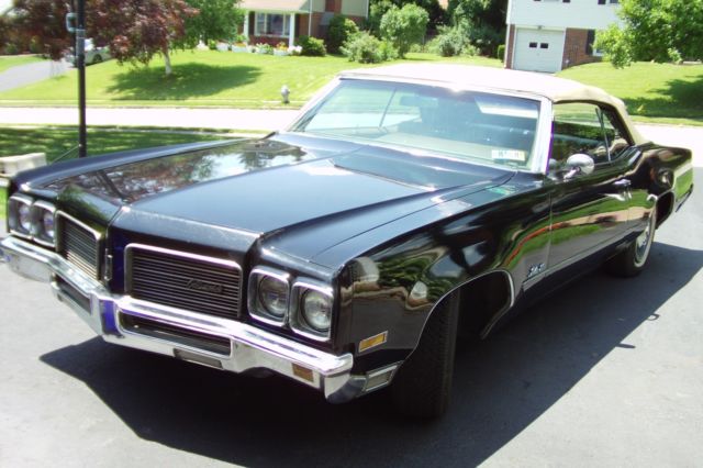FULLY LOADED WITH AC, AM/FM RADIO, POWER WINDOWS, POWER SEAT, SIDE TURNING LIGHTS, ETC455 V8 390 HP, TH400 AUTOMATIC TRANSMISSION, POSI TRACTION REAR ALL FACTORY OPTIONS EBONY BLACK WITH GOLD INTERIOR AND TOP ORIGINAL PROTECTO-PLATE OWNERS MANUAL AND PAPERWORK THE BODY WAS RESTORED WITH NEW SHEET METAL AND PAINT INTERIOR IS LIKE NEW TOP ...