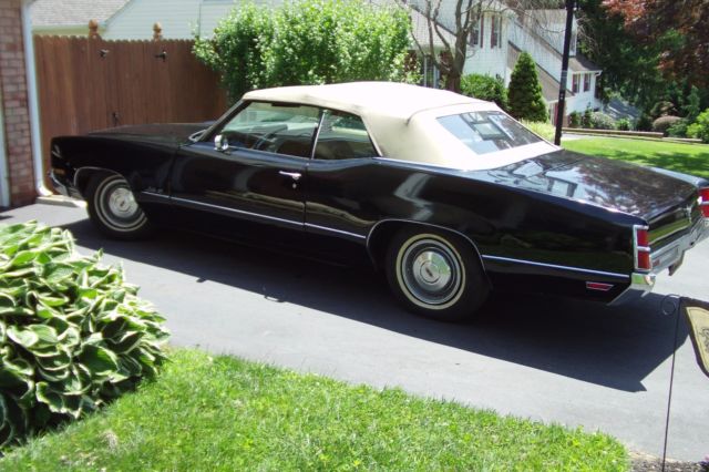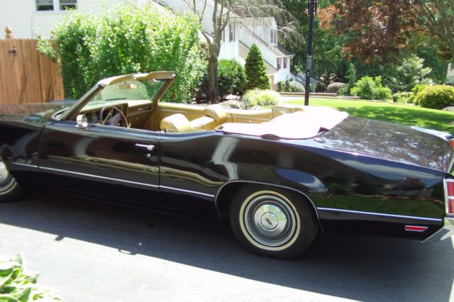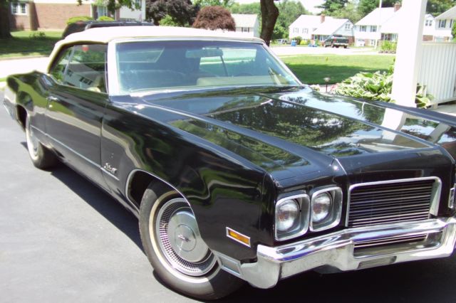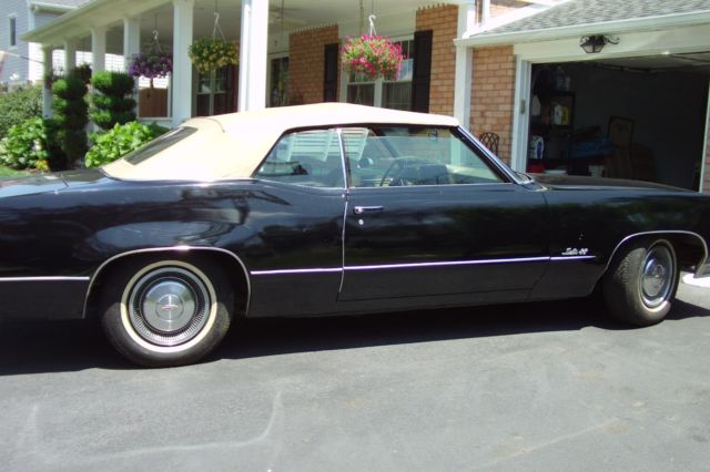 FULLY LOADED WITH AC, AM/FM RADIO, POWER WINDOWS, POWER SEAT, SIDE TURNING LIGHTS, ETC455 V8 390 HP, TH400 AUTOMATIC TRANSMISSION, POSI TRACTION REAR ALL FACTORY OPTIONS EBONY BLACK WITH GOLD INTERIOR AND TOP ORIGINAL PROTECTO-PLATE OWNERS MANUAL AND PAPERWORK THE BODY WAS RESTORED WITH NEW SHEET METAL AND PAINT INTERIOR IS LIKE NEW TOP IS LIKE NEW AND WORKS PERFECT ALL THE WINDOWS WORK PERFECT THE ENGINE COMPARTMENT IS ALL ORIGINAL THE AC COMPRESSOR IS SEIZED AND IS OUT OF CAR ALL COMPONENTS ARE THERE THE CAR WAS IN CLIMATE CONTROLLED STORAGE UNTIL THE OWNER PASSED IT SAT FOR MANY YEARS UNTIL I STUMBLED UPON IT. AFTER I PURCHASED THE CAR FROM THE SON I REMOVED THE GAS TANK AND HAD IT RESTORED, NEW SENDING UNIT, NEW FUEL PUMP, NEW FUEL LINES, ORIGINAL CARB REBUILT, ALL NEW VACUUM LINES, PLUGS, POINTS, OIL CHANGE, ETC THE CAR FIRED RIGHT UP BUT THE ENGINE IS A BIT NOISY THERE IS NO SMOKE BUT IT DOES NOT RUN SMOOTHLY IT WILL ALSO NEED EXHAUST WORK AND BRAKE WORK IT DOES RUN AND DRIVE! THERE IS LITTLE TO DO TO GET THIS CAR TO THE SHOWS AND TO ENJOY I HAVE DECIDED AT THIS POINT I HAVE TO MANY OTHER IRONS IN THE FIRE AND WANT TO MOVE ON I AM PUTTING THIS BEAUTY UP FOR AUCTION GOOD LUCK! DUE TO OVER 30 QUESTIONS ABOUT THIS CAR I DID SOME DIGGING AND FOUND THE ORIGINAL BUILD SHEET UNDER THE BACK SEAT IT IS NOW IN THE PICTURES AS IS THE PANEL ON THE FIREWALL THIS CAR IS ONE OF A KIND ACCORDING TO THE INFORMATION I HAVE OBTAINED IT IS A W33 HI-PO PACKAGE WITH CUSTOM 19 CODE EBONY BLACK PAINT FROM FACTORY IT WAS A CUSTOM ORDERED CAR WITH TOP OF THE LINE OPTIONS
