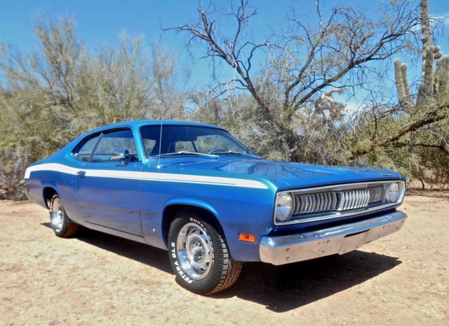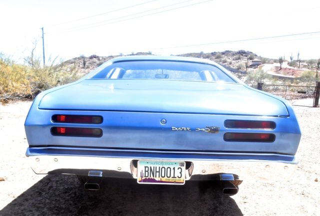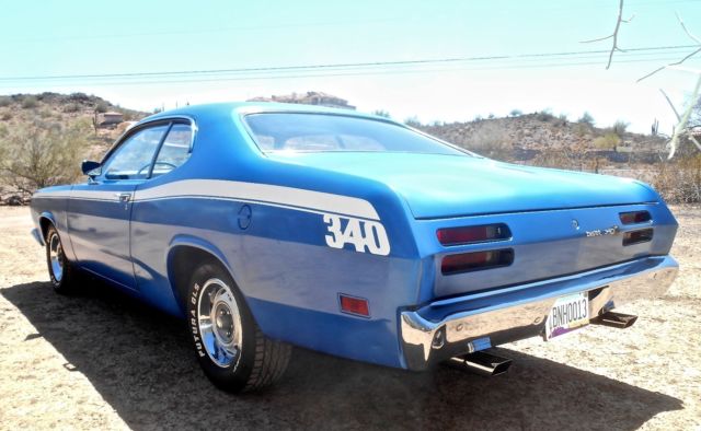 I have been working on Mopars for over 50 years. This my wife's car, I spent over 2 years making it dependable and correct. She has now inherited a Mercedes SL and decided she wants the little red convertible fixed up to drive. The engine compartment, front suspension and rear end areas have all been cleaned and detailed. The floors and trunk are original and rust free. As far as I know all the sheet metal is original, even the undercoating is all still factory. The Duster has one older repaint in the original B5 blue, a 10 footer with some chips, touchups and some faded spots. A great driver, real peppy, sounds throaty, gets a lot of attention. This car has the original Broadcast sheet, fender tag, dash VIN and door VIN decal. Az titled, licensed and insured in my name. New parts that have been installed: Complete power steering [was manual steering] Hoses & belts Water pump Fuel pump Brakes shoes-original 10" drums turned Wheel cylinders [all4] Master cylinder Battery Ignition Dist cap Date coded spark plug wires Ball joints/shocks/tie rods/bushings Fuel tank&fuel lines 2 1/2 inch exhaust-manifolds to tips Carburetor rebuild Axle & pinion seals All misc related parts, fluids and gaskets Original parts and options: 340 HP 4 bbl 8 3/4 rear end with 3.23 Sure Grip 150 mph speedometer & rallye dash Deluxe seats with fold down arm rest Front sway bar 727 Torqueflite All glass D70x14 Goodyear Polyglas spare 4 Rallye wheels, centers, rings Trunk mat/divider board Bumper jack/complete Thermoquad #'s carb and intake Factory options added: Rallye tachometer Am/Fm stock radio Power steering Had a Gullwing-but removed it Also has rear air shocks Tires have good tread, but starting to weather check. Interior I believe is original and in really decent condition, The original dash pad is not cracked, but is wrinkled on left upper corner. I bought this car 4 years ago for my wife to drive because it was so original and solid, the best I had seen in years. I have invested a lot of time and money and of course they can always use more, but if want a real deal 340 Duster, this is the one. I am sure I forgot some things, if you have any questions, please feel free to contact me. For sale locally, so I reserve the right to end the auction at any time. If you have less than 10 positive feedback, you must contact me first or your bids will be cancelled. Please, no foreign buyers unless you contact me first. $500 Pay Pal non-refundable deposit is due within 24 hours of auction end. Full payment within 7 days of auction end, cash or bank transfer only, unless otherwise agreed on. Car must be picked up within 21 days of auction end.