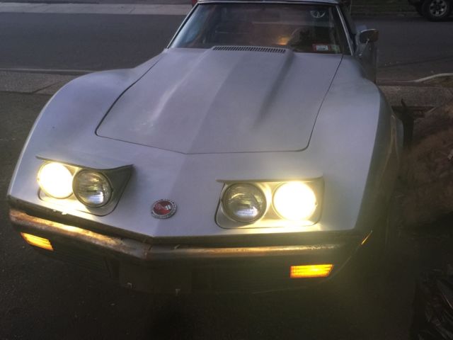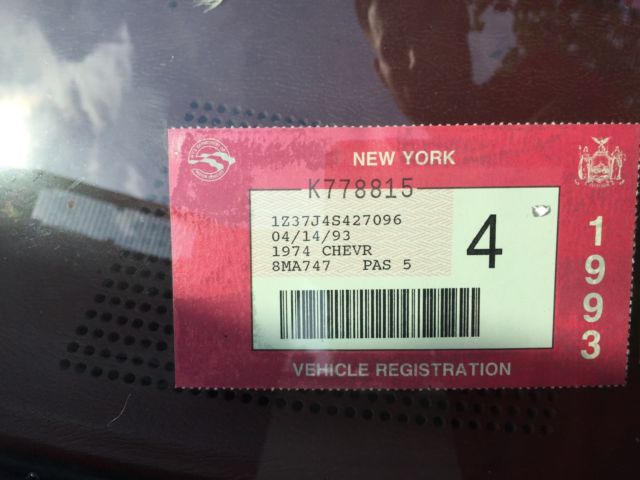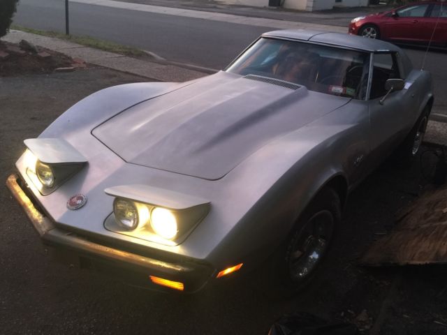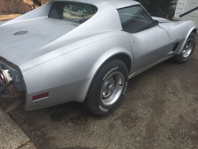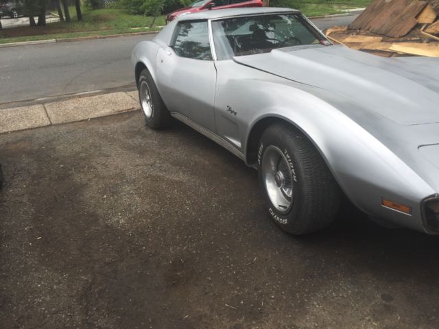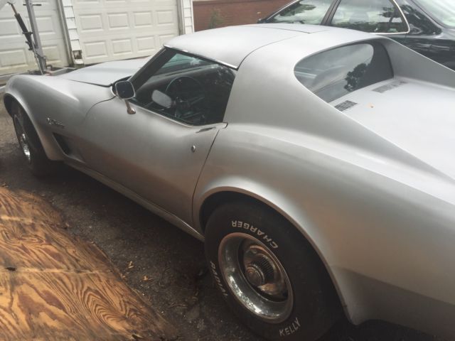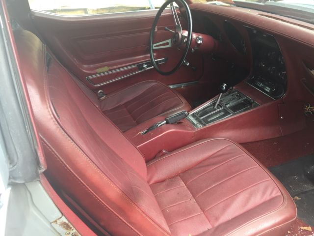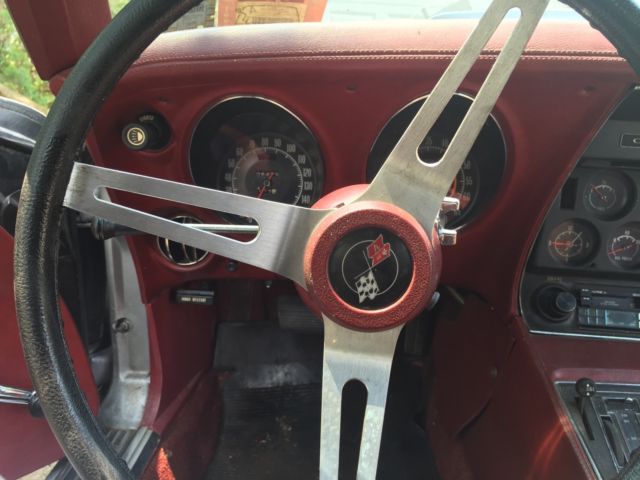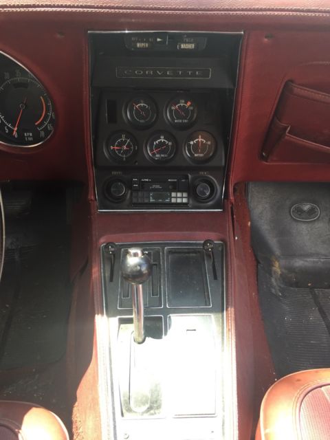This car in particular has been kept together quite well no mechanical problems that would hurt a restoration. *It has not been restored yet so its been pretty much untouched* Everything kept original nothing tainted. The bumpers are being replaced with the exact style that was on the car including the Split Rear bumper. The inside is in good condition with the Dark Red interior still intact and in good condition. All the gauges and switches are working like new and its like the car never skipped a beat. Now we put a new alternator on it and did proper maintenance on it to have it running properly after sitting in a barn for over 25 years. So the gas, oil, and spark plugs were all replaced and put in new. This a good survivor. The front right caliper needs to be replaced or rebuilt. Im currently looking to get it fixed so upon sale it may be completed. Other then that that you can pop off the T-Tops and drive this baby down the road with pride. An American Beauty thats ready for the streets again! Again i do have the bumpers front (split) and back! The "Vehicle Identification Number" (also VIN or serial number) is stamped on a plate on the inner vertical surface of the left windshield pillar visible through the windshield. PositionCharacterDescription11Chevrolet Division2ZCorvette3 & 467Convertible37Coupe5JQ3 350-cid V8, 195-hp, Four-BarrelTL82 350-cid V8, 250-hp, Four-BarrelZLS4 454-cid V8, 270-hp, Four-Barrel6419747SAssembled in St. Louis, MO8 to 13400001 to 437502Production SequenceFeatureConvertibleCoupeWheelbase98 inches (2.489 m)98 inches (2.489 m)Overall length185.5 inches (4.712 m)185.5 inches (4.712 m)Overall width69.0 inches (1.753 m)69.0 inches (1.753 m)Overall height 47.4 inches (1.204 m)Ground Clearance4.5 inches (11.4 cm)4.5 inches (11.4 cm)Front tread58.7 inches (1.491 m)58.7 inches (1.491 m)Rear tread59.4 inches (1.509 m)59.4 inches (1.509 m)TiresF70-15F70-15FrameFull-length welded-steel ladder type with five cross members. Steel box sections, welded.Front suspensionIndependent, unequal-length A-arms, coil springs; tubular shocks and stabilizer barRear suspensionIndependent, trailing arms, toe links, transverse chromium-carbon steel leaf spring, tube shocks, and anti-roll barSteeringSaginaw recirculating ball, 17.6:1 ratio, 2.9 turns to lock, 39.0 turning circleRear axle typeSprung differential, Hypoid gearBrakesHydraulic, vented four wheel discs; 11.75-inch diameter, single calipers, optional power assistSwept area11.75" front and backTotal swept area461 sq. in.Wheels8" wide slotted steel 15" 5-lug discStandard rear axle ratio3.36:1Optional rear axle ratio3.70:1, 3.08:1, 3.36:1, 3.55:1, 4.11:1Engine SpecificationsFeatureBase Engine RPO ZQ3RPO LS4RPO L82TypeV-8, Overhead valveBlockCast IronDisplacement350 cid454 cid350 cidBore & Stroke4.00 x 3.48"4.251 x 4.00"4.00 x 3.48"Compression Ratio9.0:18.25:19.0:1Brake Horsepower195 @ 4400270 @ 4400250 @ 5200Torque275 lb-ft @ 2800380 lb-ft @ 2800285 lb-ft @ 4000Main BearingfiveValve LiftersHydraulicCamshaft High-performanceHigh-performanceFuel SupplyRochester Quadra-Jet Four-Barrel Model 4MVRochester Quadra-Jet Four-BarrelRochester Four-Barrel with 2.50-inch Diameter Dual Exhaust system