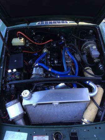 From previous owner;My tale: In 2009 I DROVE the car in to get it smogged. While the mechanic was fiddling with it, the head gasket blew. Upon disassembly I was told it needed a rebuild. The engine was rebuilt, a new clutch installed, and eventually put back in the car. After more than three years of asking for my car to be finished I gave up and picked it up. The repair shop owner claimed it was almost done except for two engine mount bolts not yet installed. The distributor is not tightened down - I assume ready for timing - I do not have a timing light. There is no oil( this was not the case, it had break-in oil which in a new unrun motor is completely clear) new owner discovered You may assume I was ripped off. I drove a running car in for service and got back a car that is "almost" finished. So after putting $30K in parts and more hours than I care to admit to into this car I am done. Hopefully it will get a good home and I can get some garage space back. If the car was running it would be worth $13-14,000. The leather upholstery & carpet cost was $4,500 and the top was $3,500 from England. The radio was more than $500 and I had to install it. The Fuel Injection kit was more than $2,500 and the radiator I designed cost $1,000 to have made. That is just a sample of what is into this car so check out the following list. List of goodies: Rebuilt engine 0 miles (Odometer 50,549 miles) New Clutch Original Four Speed Tranny with Electronic Overdrive New Driveshaft 1977 Rear End New Upgraded Distributor and Coil 140 Amp Delco Alternator replaces 40 Amp Original New Heavy Duty Starter Custom Machined 6061 Aluminum Pulleys and Damper Custom Aluminum Radiator Stainless Exhaust Including CAT Fuel Injection CARB Approved Real Metal Motor Driven Oogaah Horn Oil Cooler Aluminum Head Aluminum Oil Pan with slosh baffle Powder painted front suspension and valve cover New front spindles New and upgraded brakes New Master Cylinder New Braided Stainless Flexible Brake Lines New shocks with performance cartridges and synthetic shock oil New Polyurethane bushings New Springs front and rear New Centerline Wheels New headlights, Turn Signals, and Tail Lights New Heater Assembly (you never want to replace this on your own -- what a pain!!!) New Custom Premium Leather Upholstery New Premium Carpet New HD Convertible Top with real glass rear window New Radio with CD Player, USB, 4way 6x9 Speakers, and motorized Antenna New Wood Steering Wheel New Ignition Switch New Digital Temp Gauge New door, glove box, and trunk locks New fuel pump New fuel level sender assy. Painless Fuse Kit & Relays (no Lucas Prince of Darkness!) New Knobs, Switches, and security power lockout relay New Rear Deck Lid Luggage Rack Current owner;Test drive 7/04/2017https://click.email.vimeo.com/?qs=5e85a893adfa02489d87a5f931513baa908034f606e4e1dd760def2c5120b4e09aba70ee8c3830081e85e02b5ff8cb1ef304fb6f661cfd6b29bb7d2bc34fd3ac https://click.email.vimeo.com/?qs=33c0280a3b0ce38024d8f9f5988bba5d69af1fbcc08fbc3eda77911a6dadf64ecaf231fddd35f68b0c6ea2abe0a532803a541b48c735569ce36a5ce806a1159f Getting on freeway https://click.email.vimeo.com/?qs=4893cfde34cb8ba0fe31d520c5925299c70952c9061a24c460afcac99294220e97e5