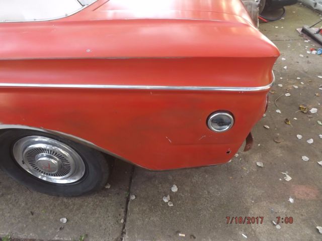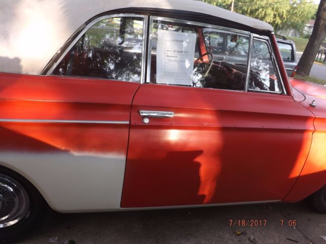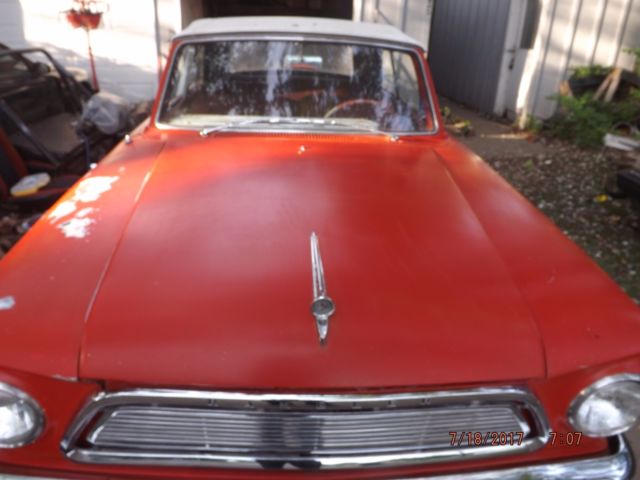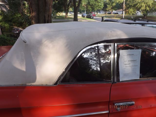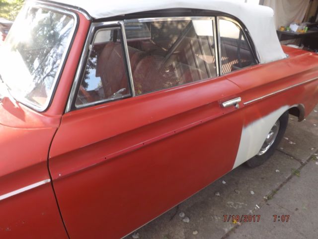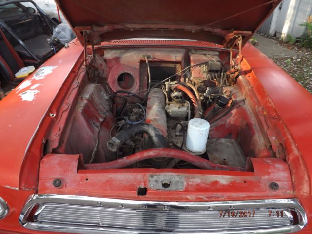 1962 Rambler American 400 convertible project. This car is a good start to a very unique and cool car. It has had some quarter repairs done and they were done right. The paint is heavily oxidized and is currently in patina finish quality. The paint is cracking up on the trunk and there looks to be some older putty repairs on dents but from what I can see the body is pretty solid considering this cars age. There are some small rust issues underneath I could see a few pin holes in the trunk pan and some spots in the rear rails will need boxed. The fuel pump is not pumping fuel at the moment but the engine fired right up after dumping some fuel down the carb. The link to the video of the engine running can be seen here. --> https://youtu.be/PVkyRzKpH8Y I am currently hunting down another fuel pump and will include it if found before the car sells. The car's soft parts are brittle and I would recommend replacing them as far as belts, hoses, suspension, and steering go. The top is brittle also but would most likely last this season of driving once the other parts are reinstalled. The interior is filthy from sitting and having some of the piping fold up on the seat edges. The car comes with the following parts ready to be installed. Re-Cored Radiator Heater core Blower motor assembly Cleaned fuel tank with new fuel level sender Rear Bumper Dash parts Fender Badges Side trim pieces with new mounting clips All in all this is a very cool piece of AMC history and worth someone's time to return to the road. Best offer will be considered so feel free to make a fair offer or contact with any questions and I will get back to you as soon as I can..
