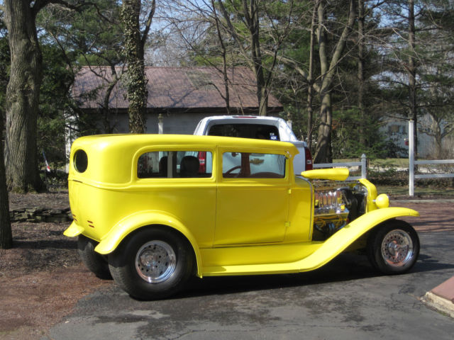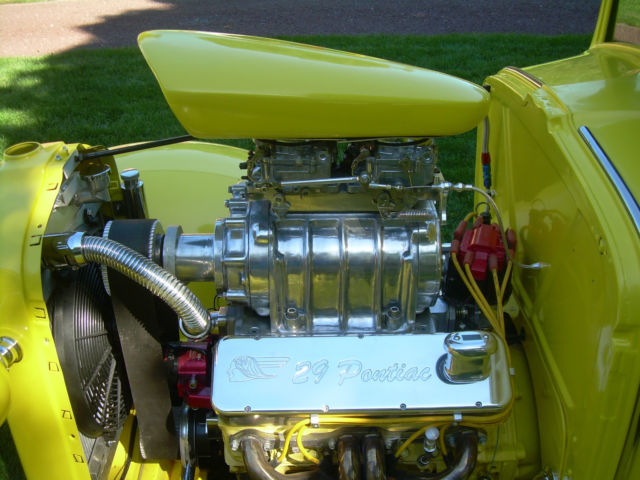 Body: All steel, 3" chop, rear fenders widened 2" and bobbed, roof filled, all wood removed and replaced with steel,all tinted safety glass, rad. housing dropped to follow lines of the cowl, custom alumn. fuel tank (18 gal.), running boerds custom made, front fenders had the spare tire cavitys filled paint is PPG Lemon Ice with Seafoam pearl, and clear coated. Painted by myself as was all body work. This paint pops in the sun!! Interior: T/T steering column from a 68 Pontiac, custom steering wheel, Fiero bucket seats, all interior stitched in ultra leather by myself. Dash and door inserts are made from solid tiger maple clear coated. Engine / Trans: 355 SBC, Lunati crank, pistons and rods. 8.5 compression, heads had ext. valves opened up and everything ported, cam is a stock 65 fuelie cam. Electric water pump and fan. This car will run all day at 185 degrees, no over heating problems what so ever. 471 blower with 2 edelbrock 55 carbs. HEI dist reworked advance curve. Custom valve covers made by the owner, ss headers and 2 1/2" ss exaust..200R4 built to handle 800 HP by Turbo Buick Performance in NY, 3000 stall converter. Chassis: All boxed and rear section built from .125 wall 2X6 steel tubing chrome four link in read, chrome upper and lower front suspension arms custom built by owner to bolt up to a mustang II style front end. 2" dropped spindles in the front and rack and pinion steering. Ford 9" narrowed read ( by owner) currie 3:72 posi. and axles. All adjustable coil overs, all wheel disc brakes, removable trans support. Car is a blast to drive, has approx. 5600 miles since on street in 2009 PA legal and titled as a PA Street Rod, there are no inspection issues. I have a copy of the original title!! If you want something different, this is your rod, I have never seen another one at any of the many national events we have been to. It is great fun to drive and always gets alot of eyeball.