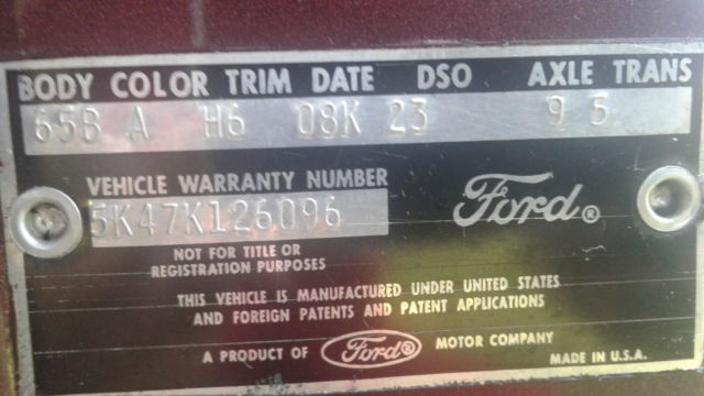 It has its original 289 271 hp HiPo engine and 4 speed trans and 9 inch posi-traction rear axle. The car runs very strong holding 60 pounds of oil pressure and the 4 speed shifts easily and the factory lock out shifter is tight and correct. The original Autolite carb retains its original metal tag C5OF J = 289 HiPo, also factory intake has the C5AE-9425 M = Sheby Mustang or Fairlane 4V intake. Everything under the hood looks to be original outside of belts and hoses, battery and plugs and wires. You can see in one of the pictures the drivers side inner fender is stamped with the vin number as well. The car is very straight and gaps and seams align well. The car was profesionally painted chiaretto red in 2012 so it looks great and I did not wash the car before I took the pictures but it still shines well. The interior is mostly original and in excellent condition and it is correct. There is no rust in the body that I can find or in the floors, the trunk has light surface rust. Vin# breakdown: 5=1965, K=Kansas City, KS plant 47=sports coupe, K=271hp 289 HiPo 126096=build number sequence Door tag information: 65B= 2 door sports coupe, A= Raven Black paint, H6= White/Black interior, 08K= 8th October, 23=Philadelphia, 9= 4:11 9" rear axle, 5= 4 speed Thank you for looking and serious inquiry's only please. Selling the vehicle as is with no warranty. No bidders below a 20 positive feedback level without first asking me or I will cancel your bid.