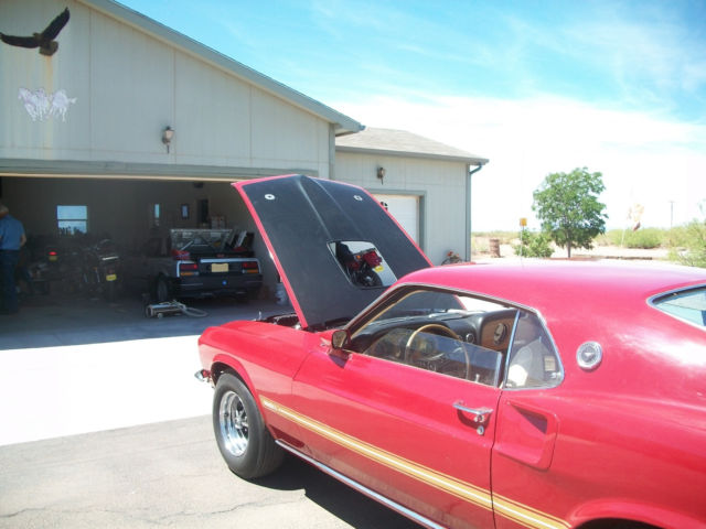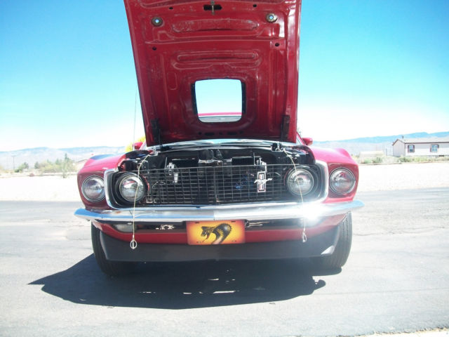Driver Quality Ford Mustang 428 Cobra Jet R code. Matching Numbers. Almost all Original, the CAM and headers have been changed. There is a MartiAutoWorks Deluxe Report to verify the car Engine runs and sounds great (idles nice and has tons of power) Everything on the car works great there are no electrical problems or known mechanical problems, all lights inside and outside work, the rim blow horn works, and the directional works. Even the AM radio and 8 track player are in working condition. Has the White Clarion Knit Vinyl with High Back Bucket Seats. Only 3 owners-2 in the same family. Mechanics The car came out of the factory with a 3.50 standard rear axle but i have a 31 spline pose rear axle that is totally rebuilt and goes with car. Has power steering, power front disc brakes drums in back and close ratio four-speed manual transmission. To get ready for sale the carburetor has been rebuilt along with the fuel pump and the brakes have been all gone through including a new power brake booster all within the last few weeks. The engine was rebuilt about 30 years ago, engine has about 30,000 miles on it since rebuilt. Odometer shows 99304. It has a better crane cam in it along with hooker headers, the original cam comes with car. Body Car was repainted once about 30 years ago (its original color) and paint is still driver quality. Has a few bubbles in paint but very minor and the drivers door needs to have the pins and bushings replaced and I have the pins, once again very minor. Extra: The original wheels and Ford shift linkage go with car along with first edition 5 volume, shop manuals. . I have a clear New Mexico title. I can be reached at 575-430-3562.or 575 434-5755.Vehicle sold as is.